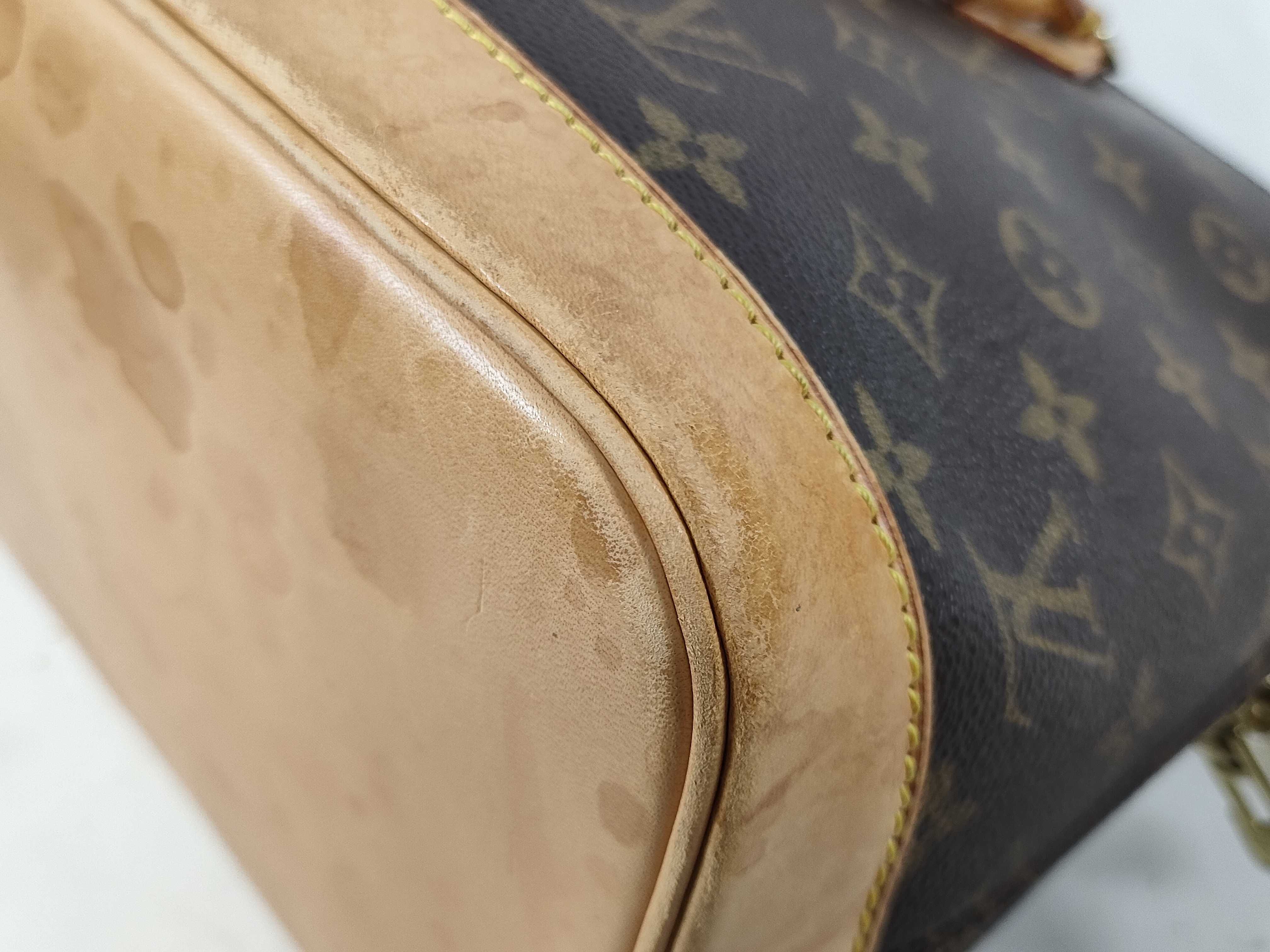 全体擦れ(小) 角擦れ(小) ヌメ革やけ汚れ(中) ヌメ革ヒビ(小) 持ち手・ショルダーひび(小) 付け根伸び切れ(小) 金具キズ(小) 内側汚れ(小) ヌメ革シミ(大) 全体汚れ(小)","タイプライン":"モノグラム","カテゴリ":"バッグ","形状コード":"ハンドバッグ","付属品コード":"","シリアル・シール・型番":"RFID 確認できず VI 0967"