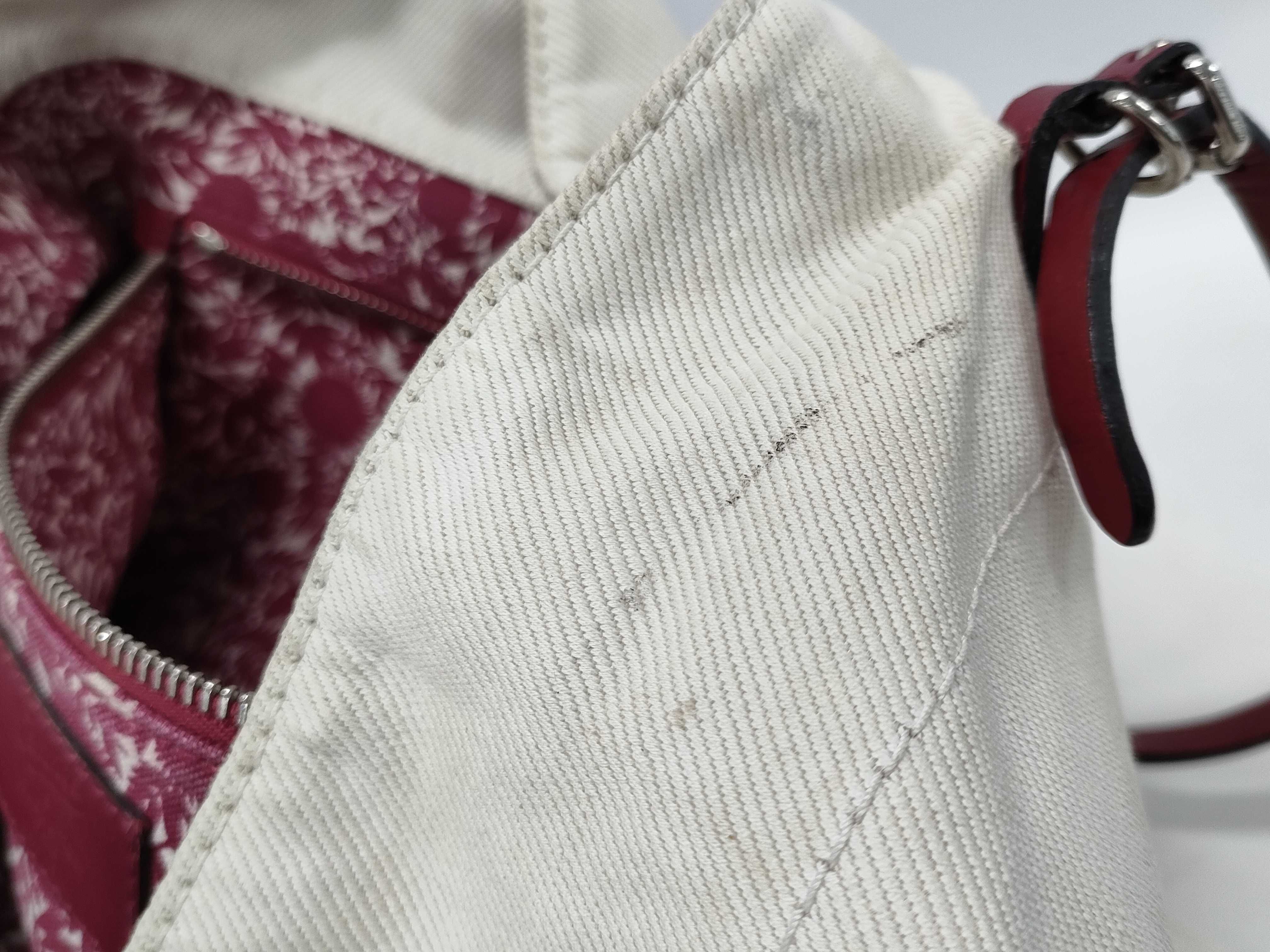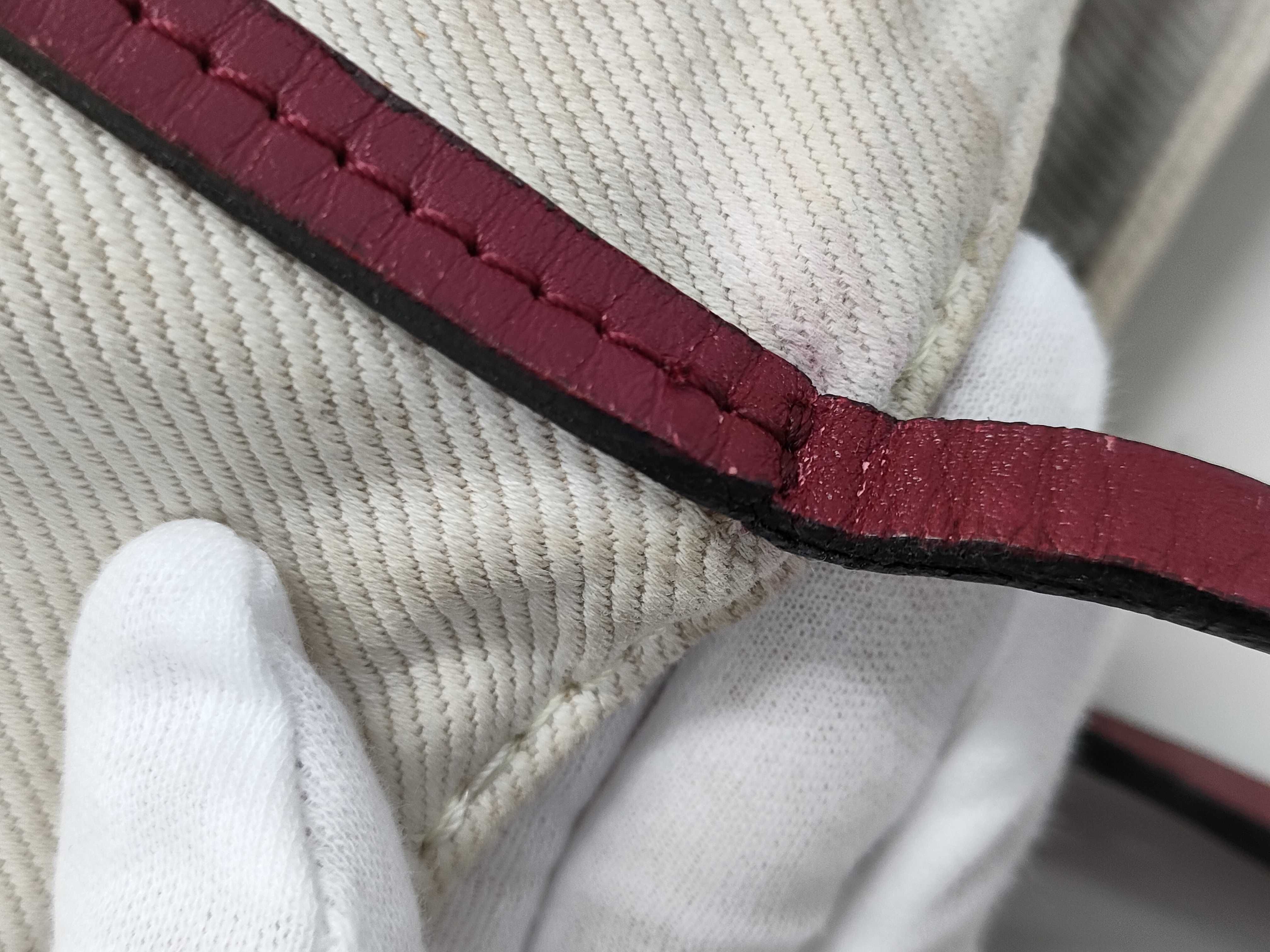 全体焼け黄ばみ・擦れ・汚れ(中) 染み(大) 型崩れ(中) 角・ふち擦れ(中) 金具擦れ傷(中) 持ち手ヨレ擦れコバヒビ(中) 内側擦れ汚れ色褪せ(中) 【シリアル