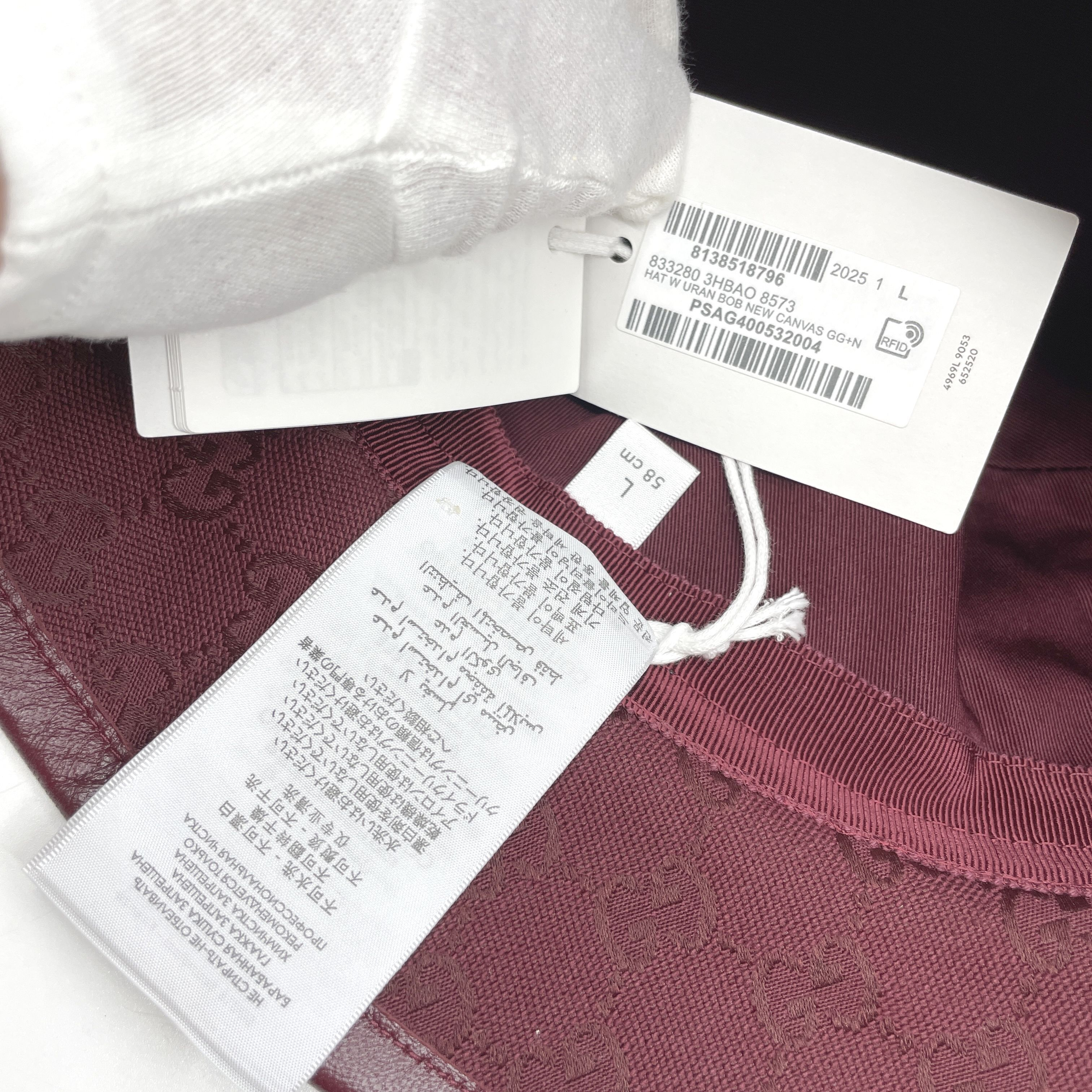 (H_0713)GUCCI GGモノグラム バケットハット 833280 L 紙タグ付き未使用品 その他小物