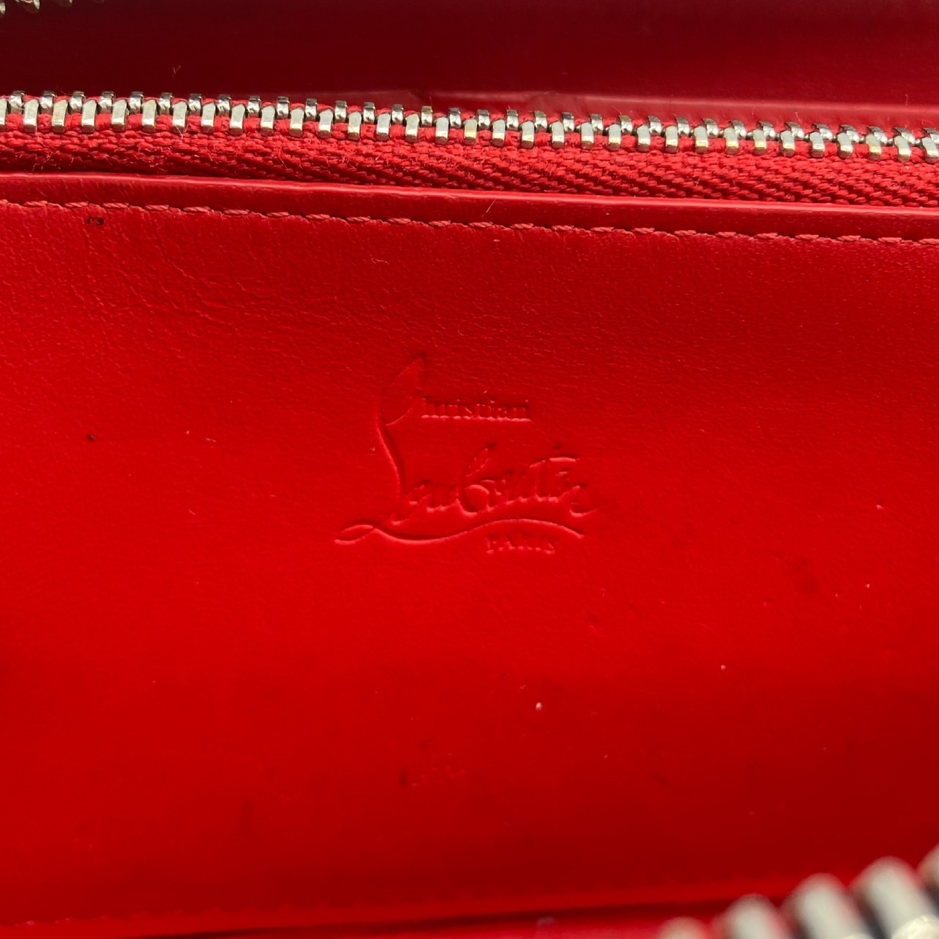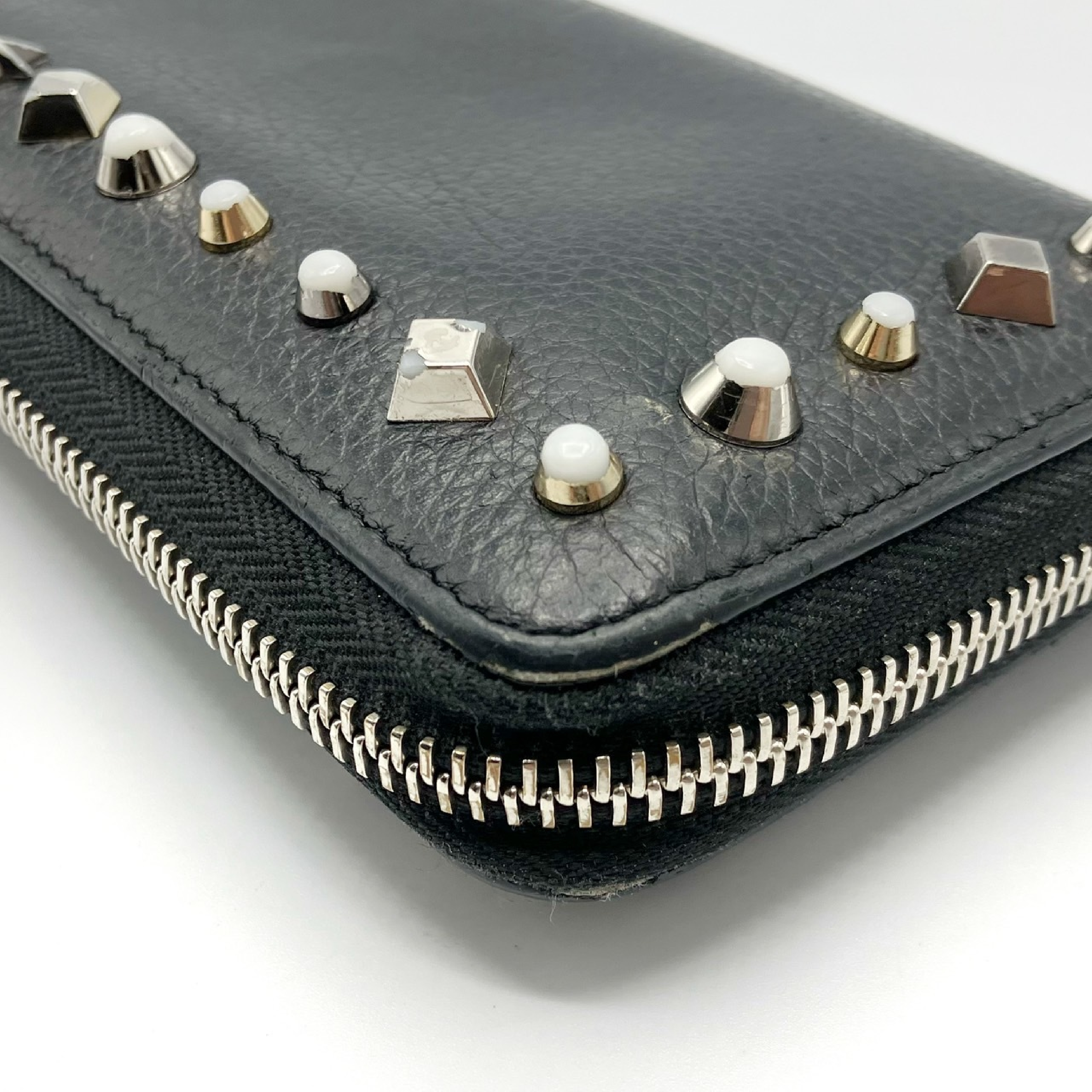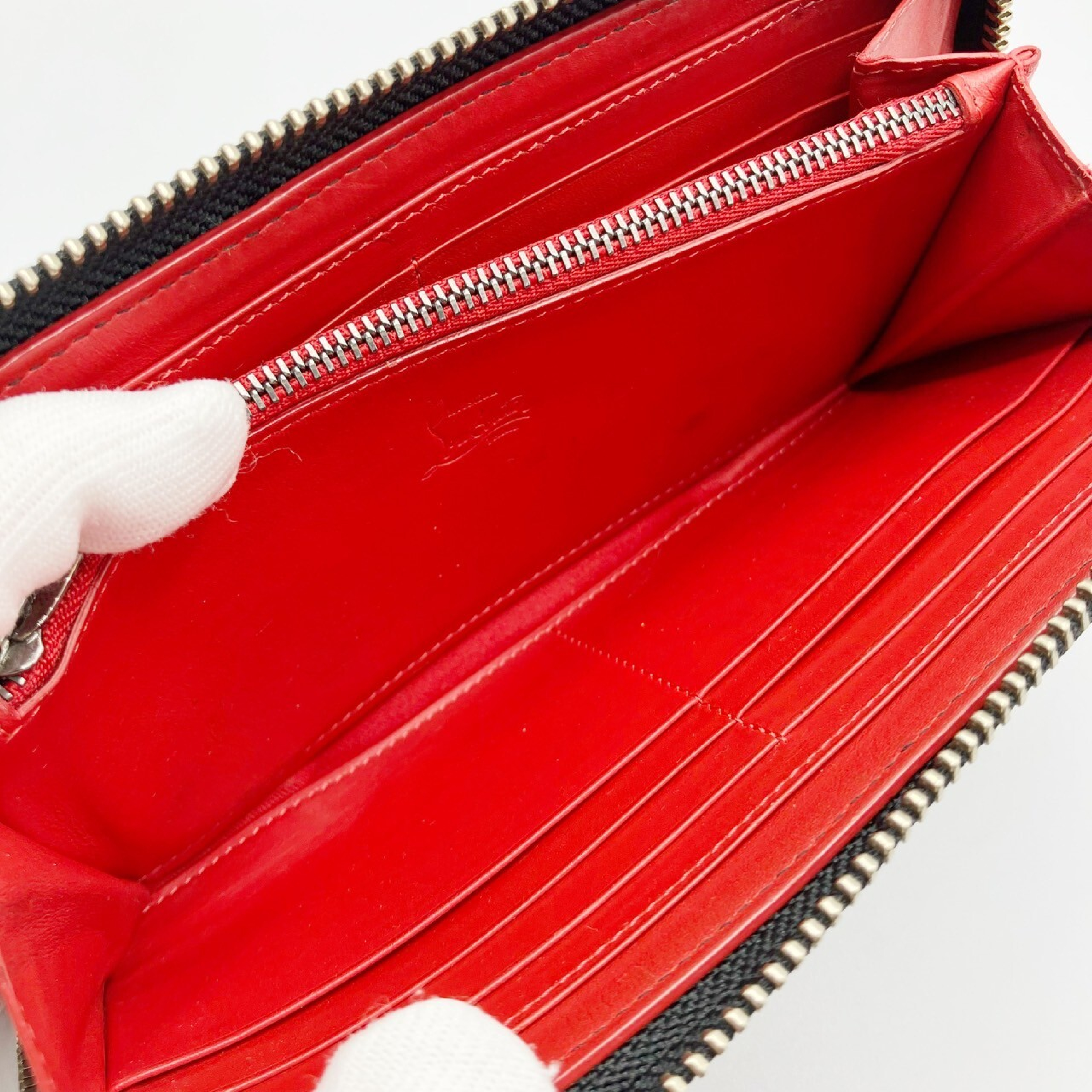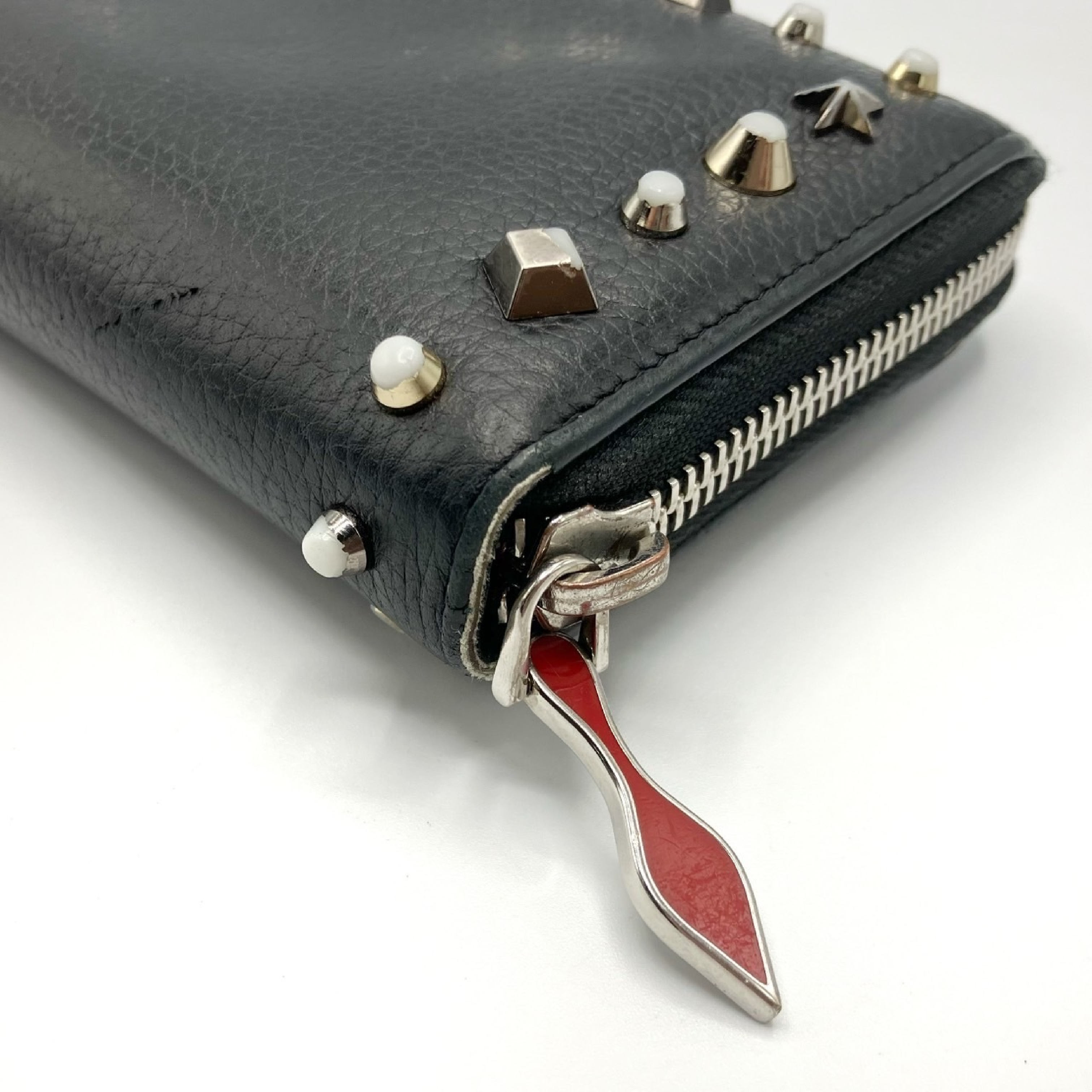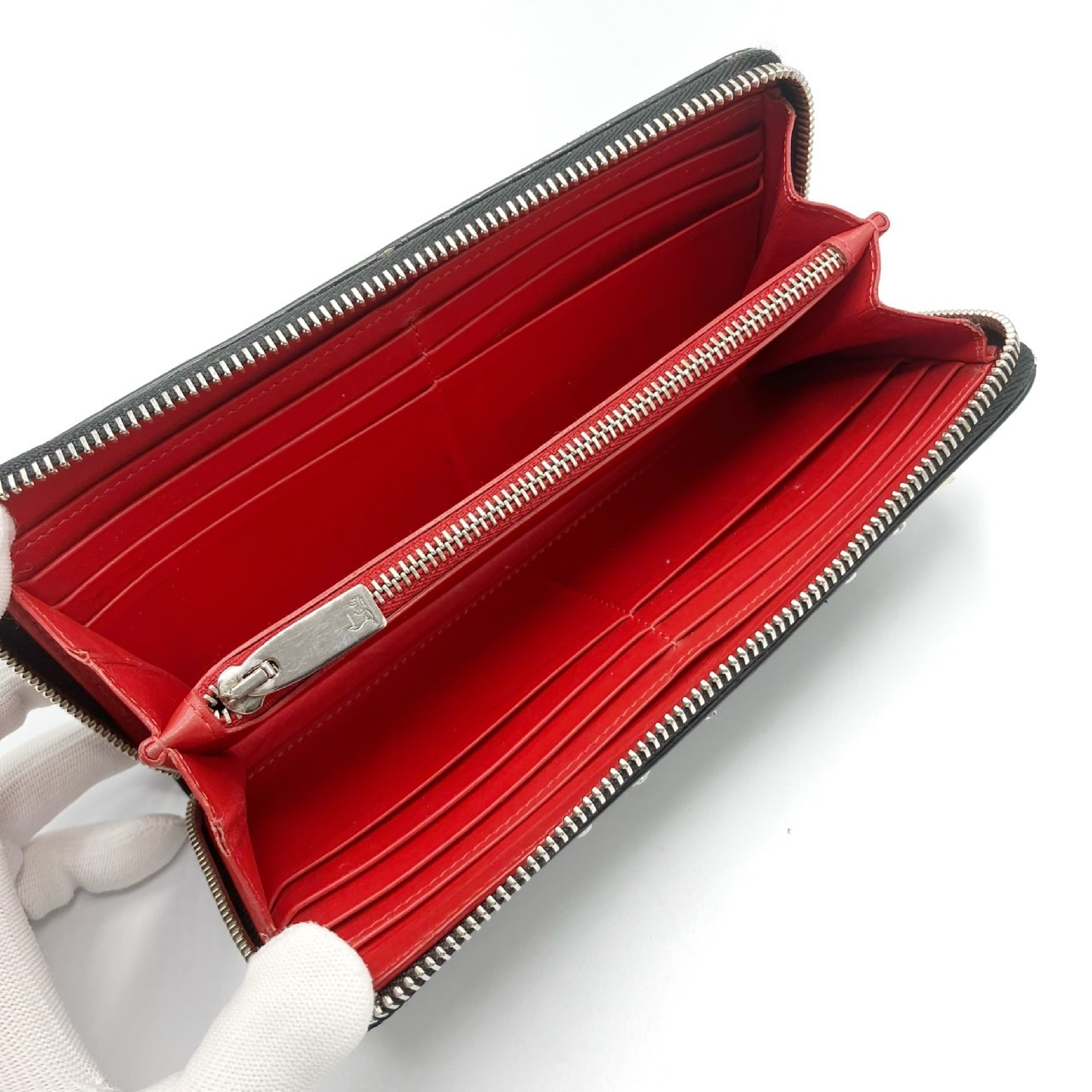 (H_0960)Christian Louboutin スタッズ レザー ラウンドファスナー長財布 財布