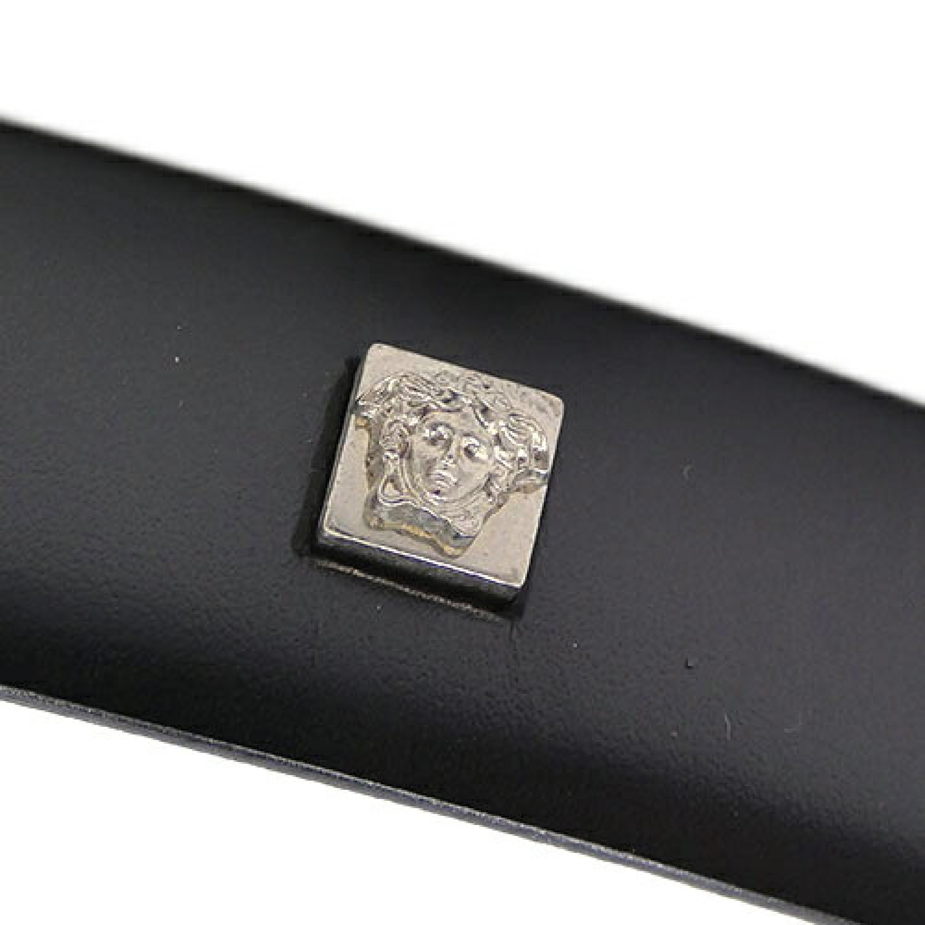 (H_1032)VERSACE 美品 ヴェルサーチ ベルト GIANNI VERSACE レザー メデューサ サイズ80 黒 ブラック シルバー金具 メンズ 4337 OJ10289 ベルト