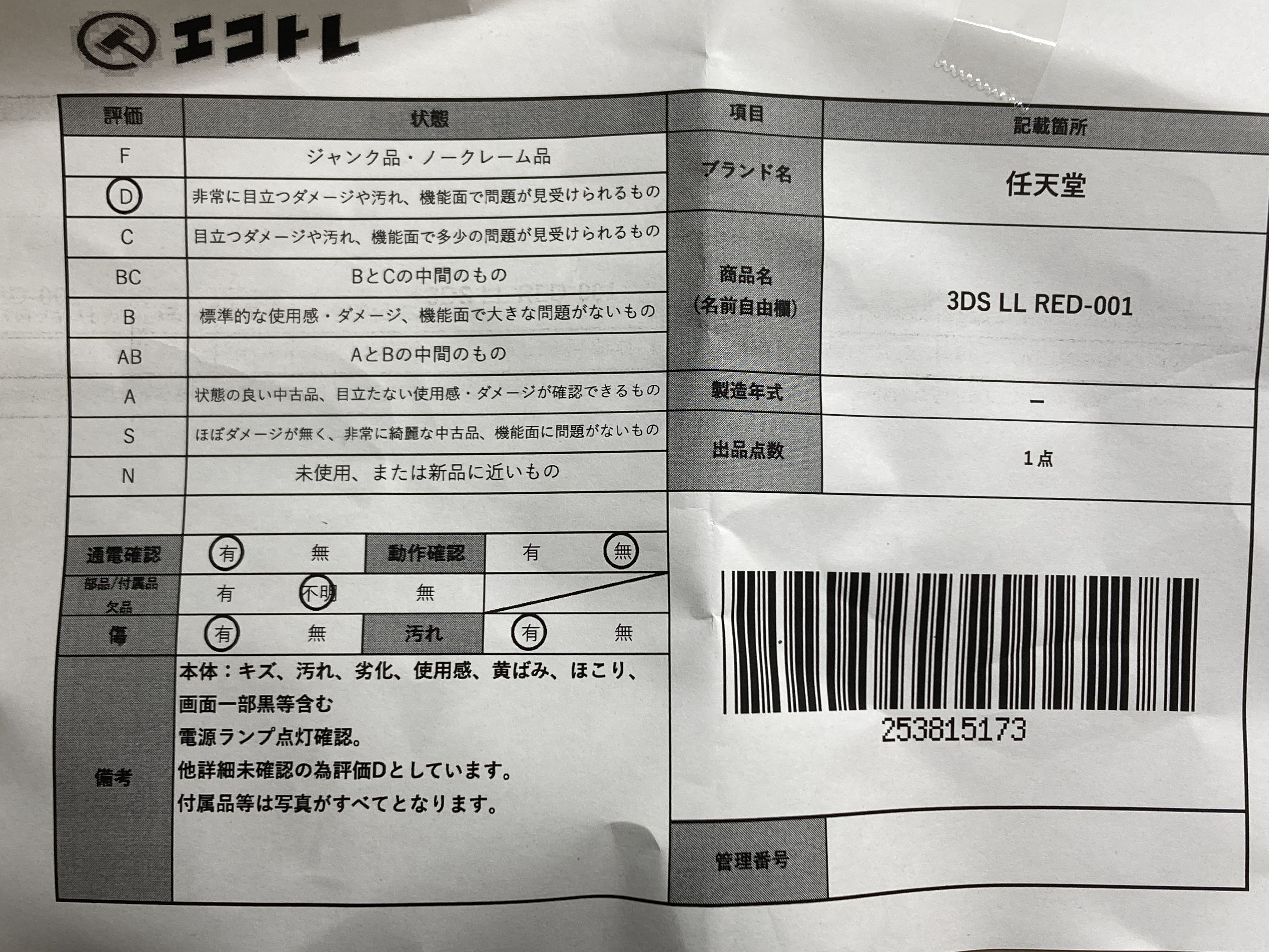 ▼SHIPPING TO JPN ONLY▼ 商品内容によって、JITBOXなどでの発送となる可能性がございます事ご理解下さい。年式などの商品情報詳細は写真にてご確認願います。※ご入札の際はご利用規約をよくお読みになってからのご参加お願いします。","タイプライン":"","カテゴリ":"ゲーム","形状コード":"本体","付属品コード":"","シリアル・シール・型番":""