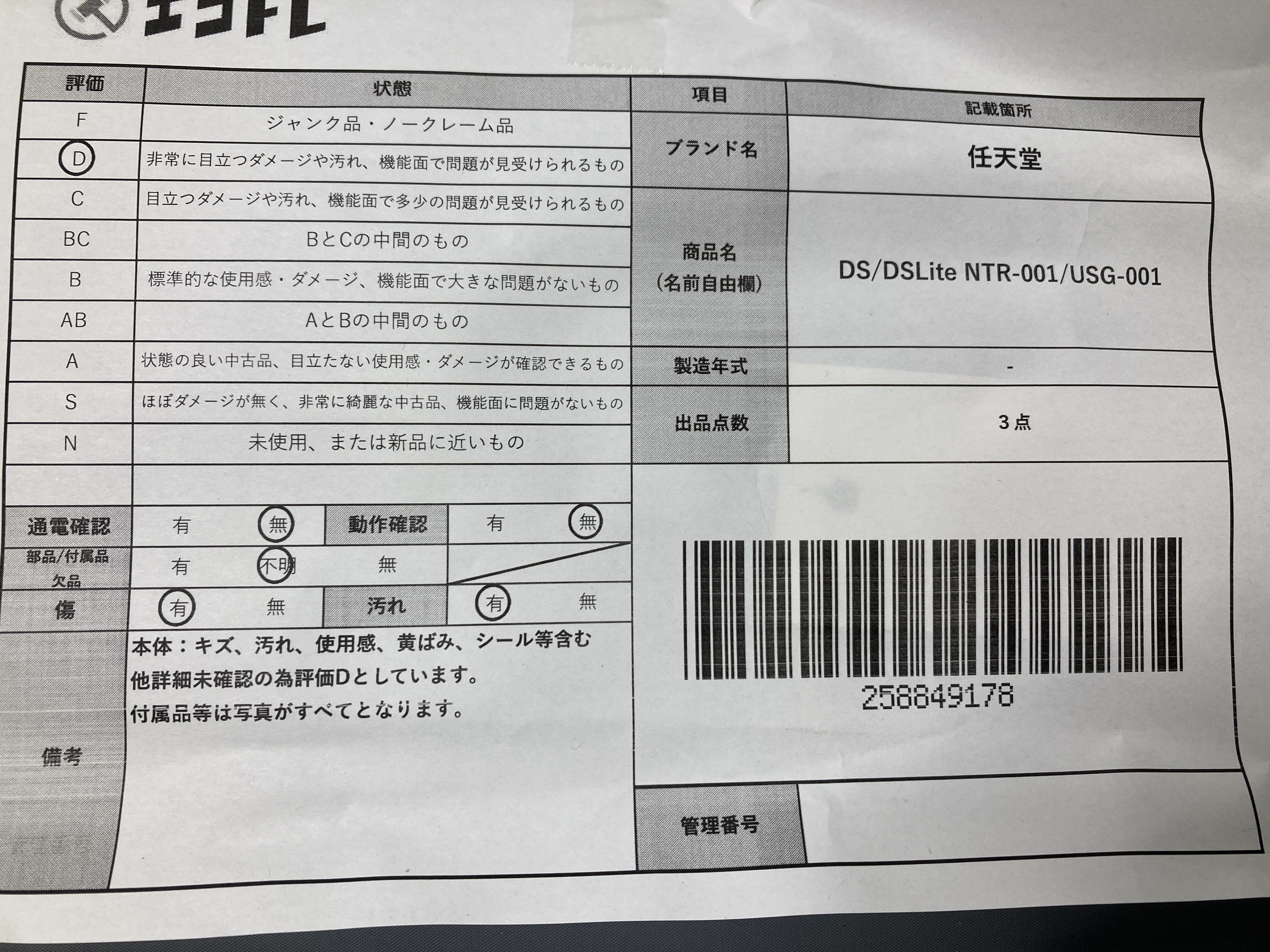 ▼SHIPPING TO JPN ONLY▼ 商品内容によって、JITBOXなどでの発送となる可能性がございます事ご理解下さい。年式などの商品情報詳細は写真にてご確認願います。※ご入札の際はご利用規約をよくお読みになってからのご参加お願いします。","タイプライン":"","カテゴリ":"ゲーム","形状コード":"本体","付属品コード":"","シリアル・シール・型番":""