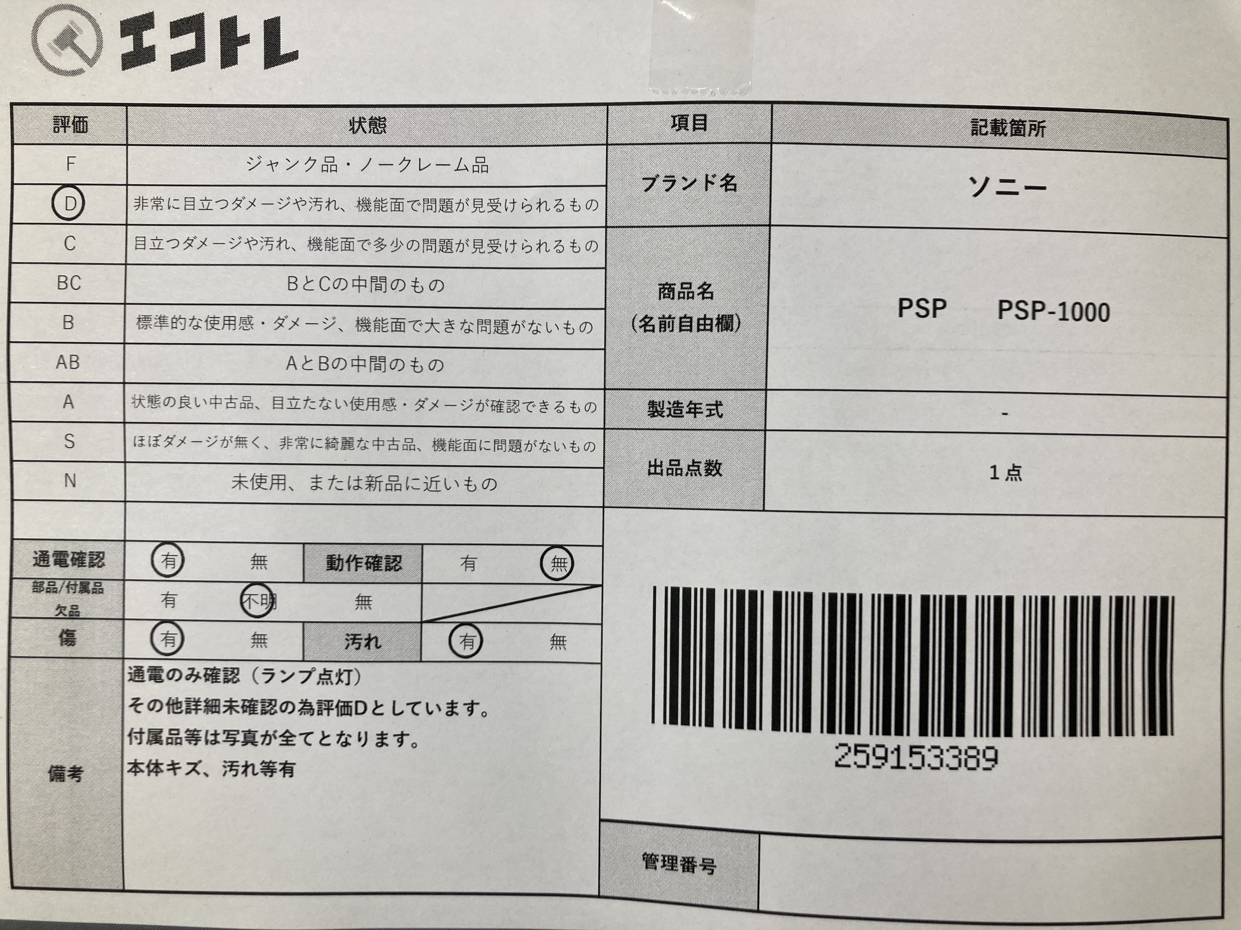 (D_0242)▼ソニー PSP PSP-1000 本体