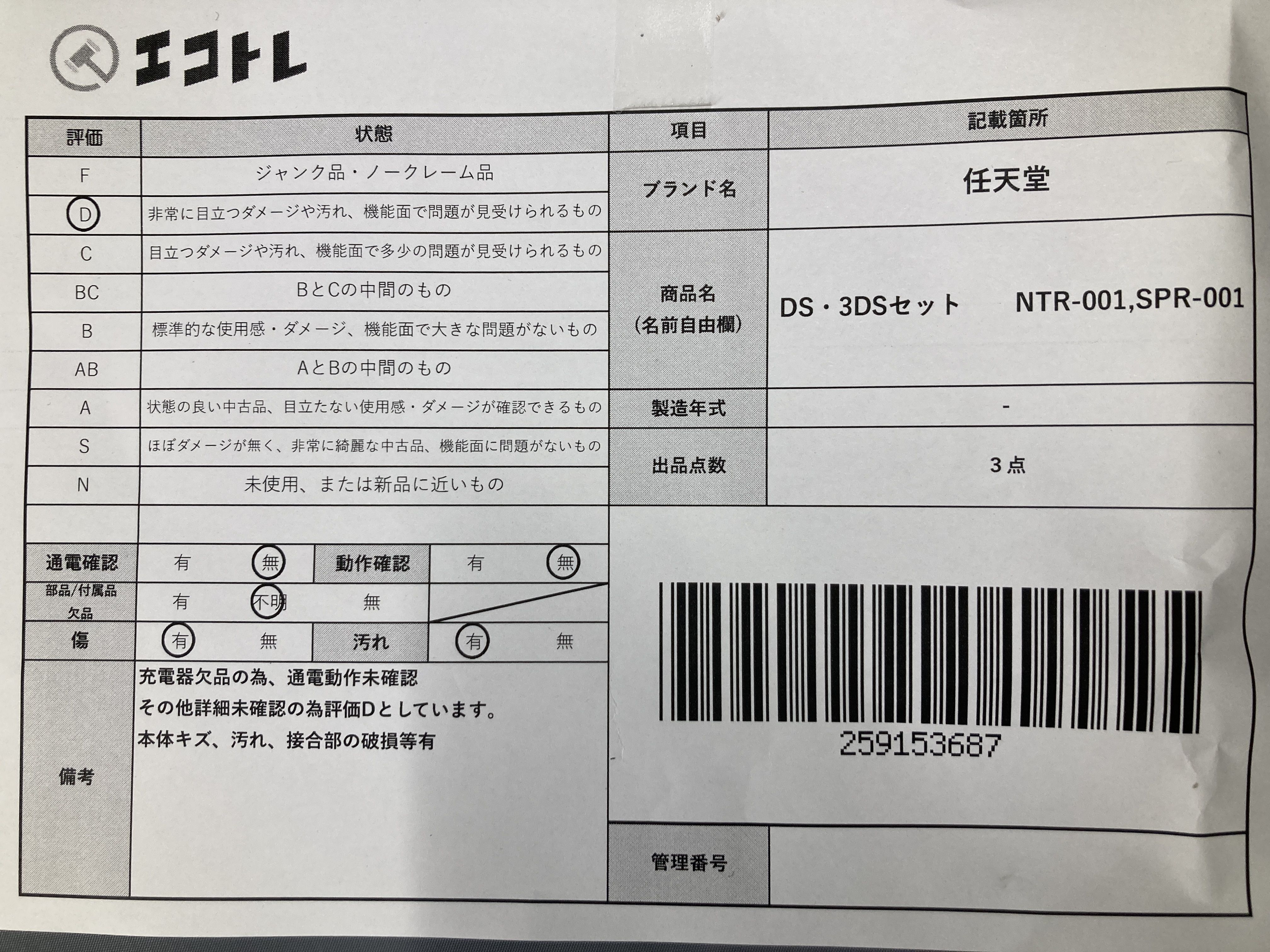 ▼SHIPPING TO JPN ONLY▼ 商品内容によって、JITBOXなどでの発送となる可能性がございます事ご理解下さい。年式などの商品情報詳細は写真にてご確認願います。※ご入札の際はご利用規約をよくお読みになってからのご参加お願いします。","タイプライン":"","カテゴリ":"ゲーム","形状コード":"本体","付属品コード":"","シリアル・シール・型番":""