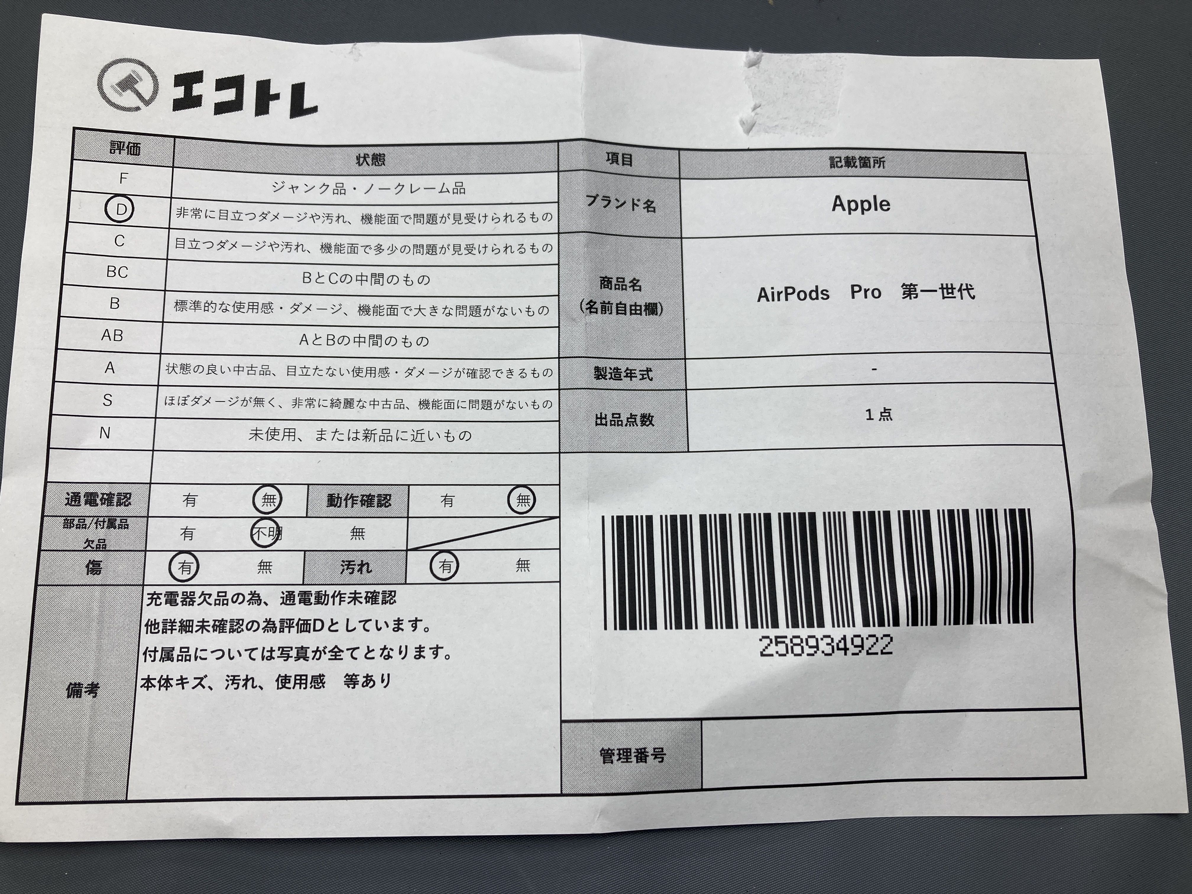 (D_0345)▼AirPods Pro 第一世代 Apple イヤホン