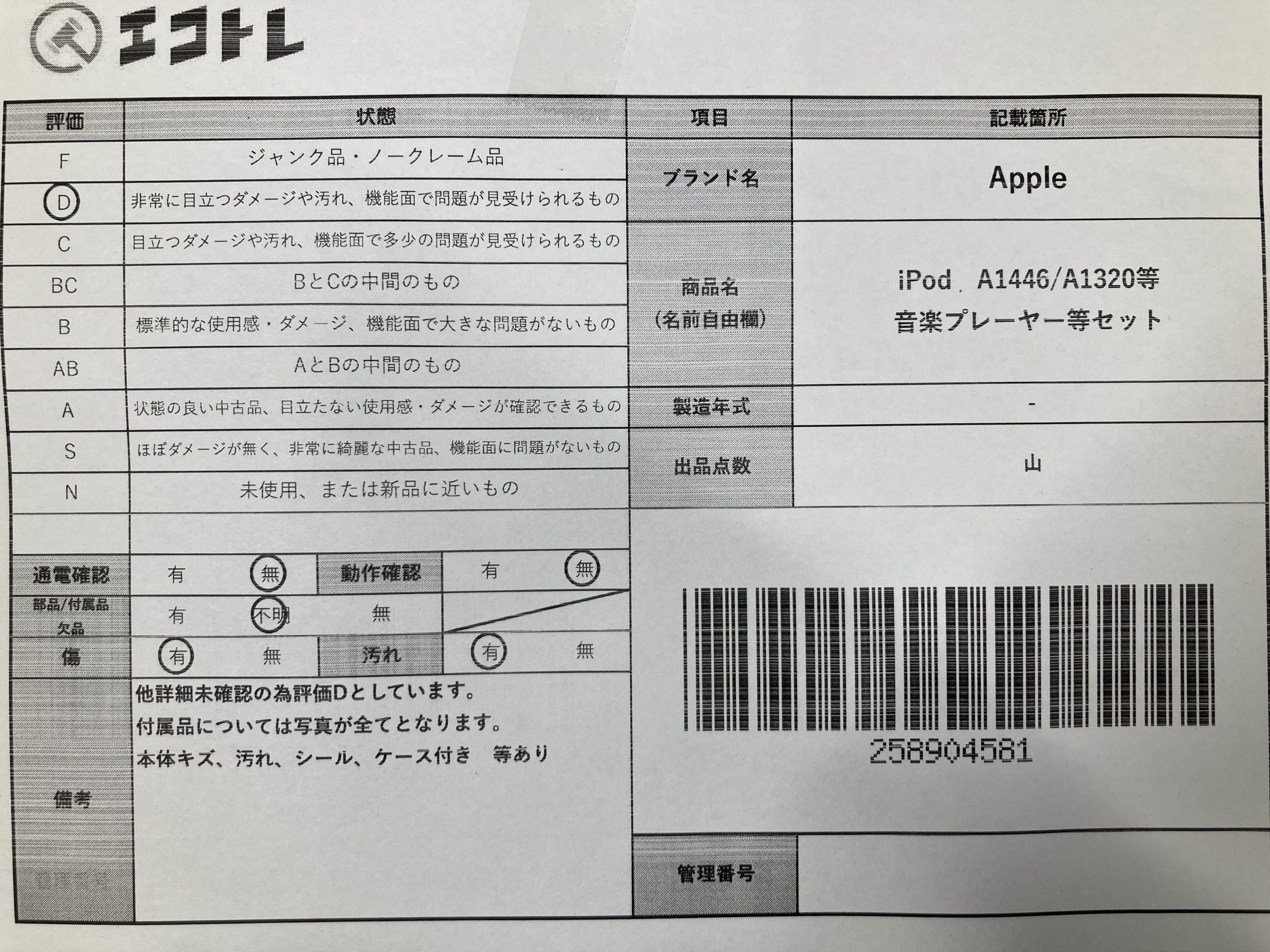 (D_0361)▼iPod A1446/A1320等 音楽プレーヤー等セット Apple ipod