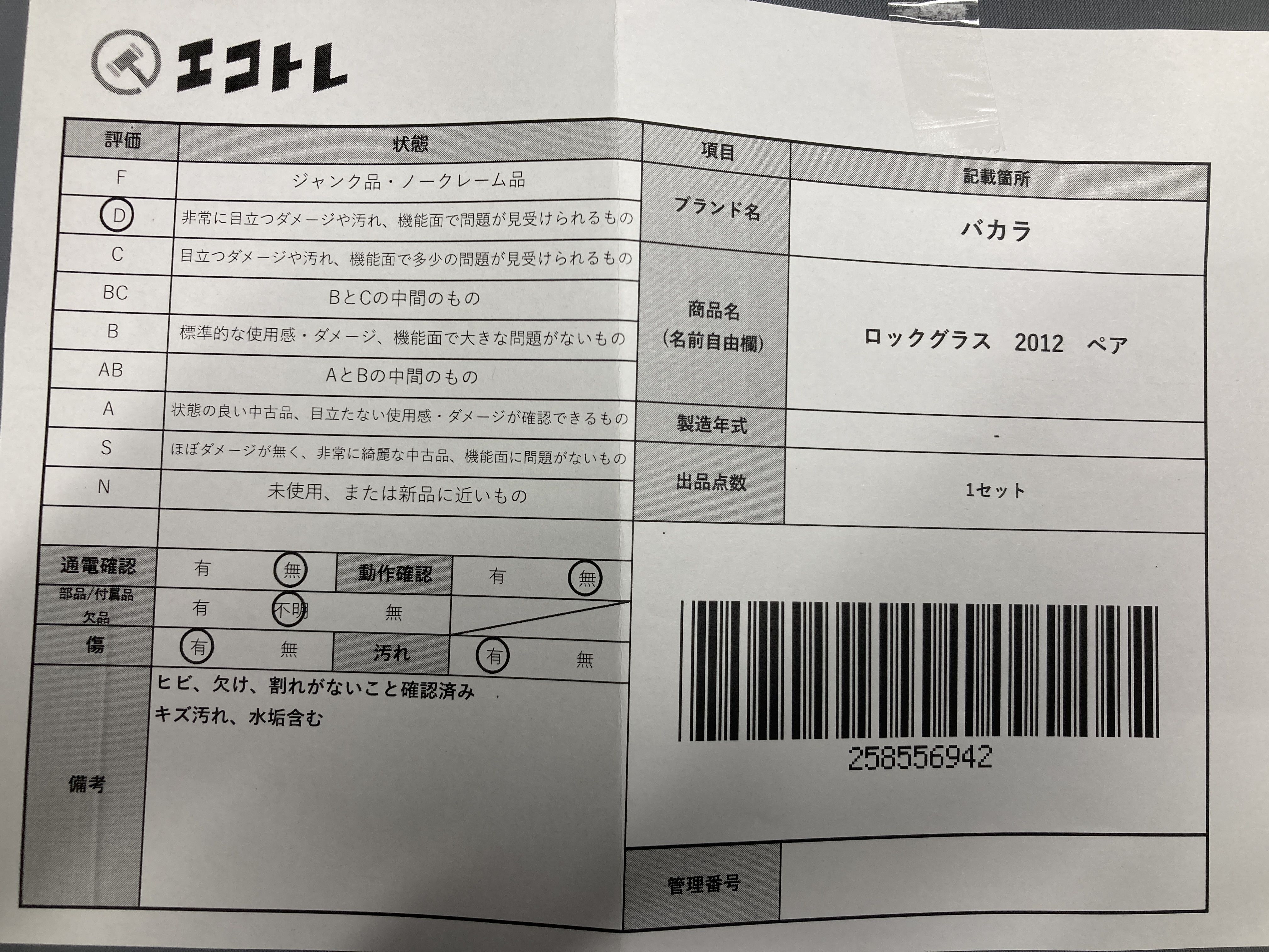 ▼SHIPPING TO JPN ONLY▼ 商品内容によって、JITBOXなどでの発送となる可能性がございます事ご理解下さい。年式などの商品情報詳細は写真にてご確認願います。※ご入札の際はご利用規約をよくお読みになってからのご参加お願いします。","タイプライン":"","カテゴリ":"陶器","形状コード":"グラス","付属品コード":"","シリアル・シール・型番":""