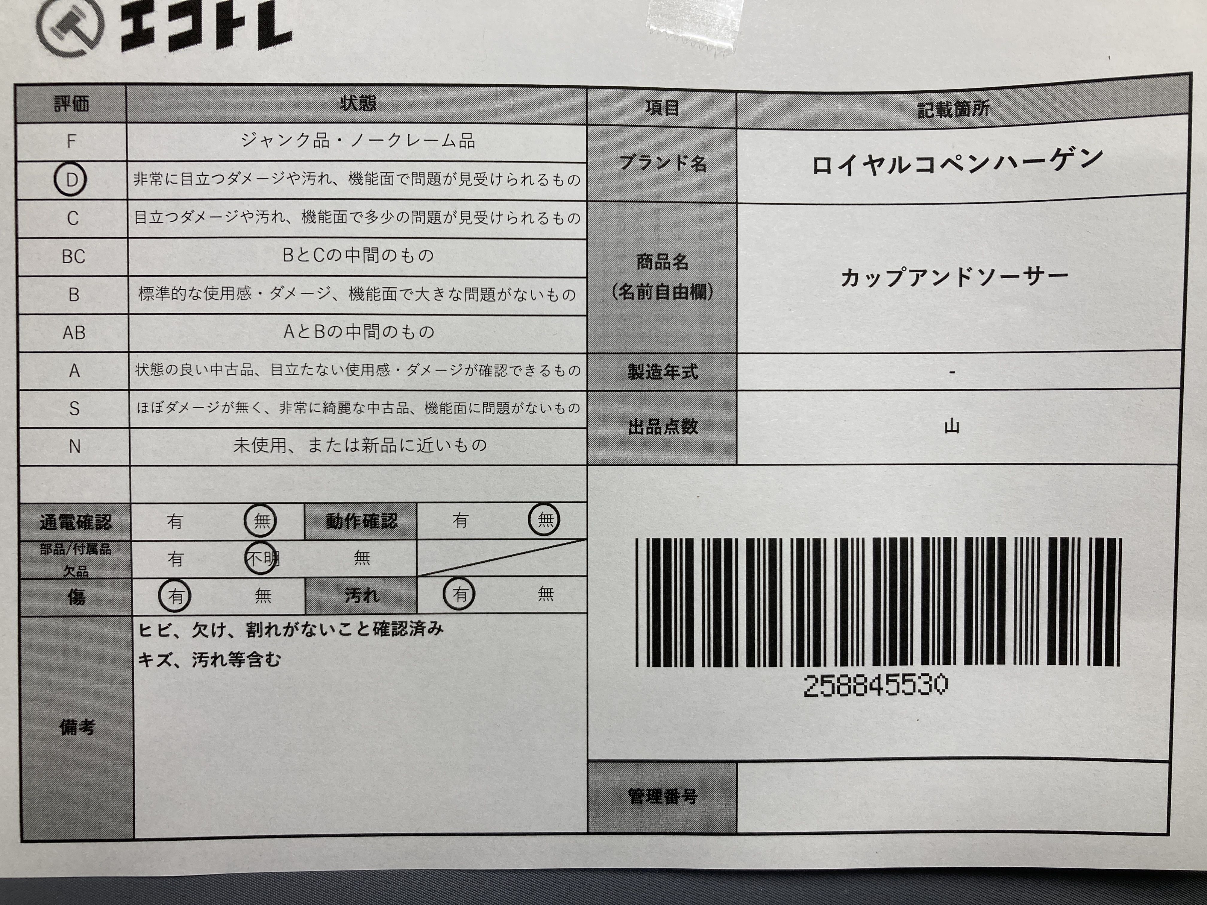 ▼SHIPPING TO JPN ONLY▼ 商品内容によって、JITBOXなどでの発送となる可能性がございます事ご理解下さい。年式などの商品情報詳細は写真にてご確認願います。※ご入札の際はご利用規約をよくお読みになってからのご参加お願いします。","タイプライン":"","カテゴリ":"陶器","形状コード":"グラス","付属品コード":"","シリアル・シール・型番":""
