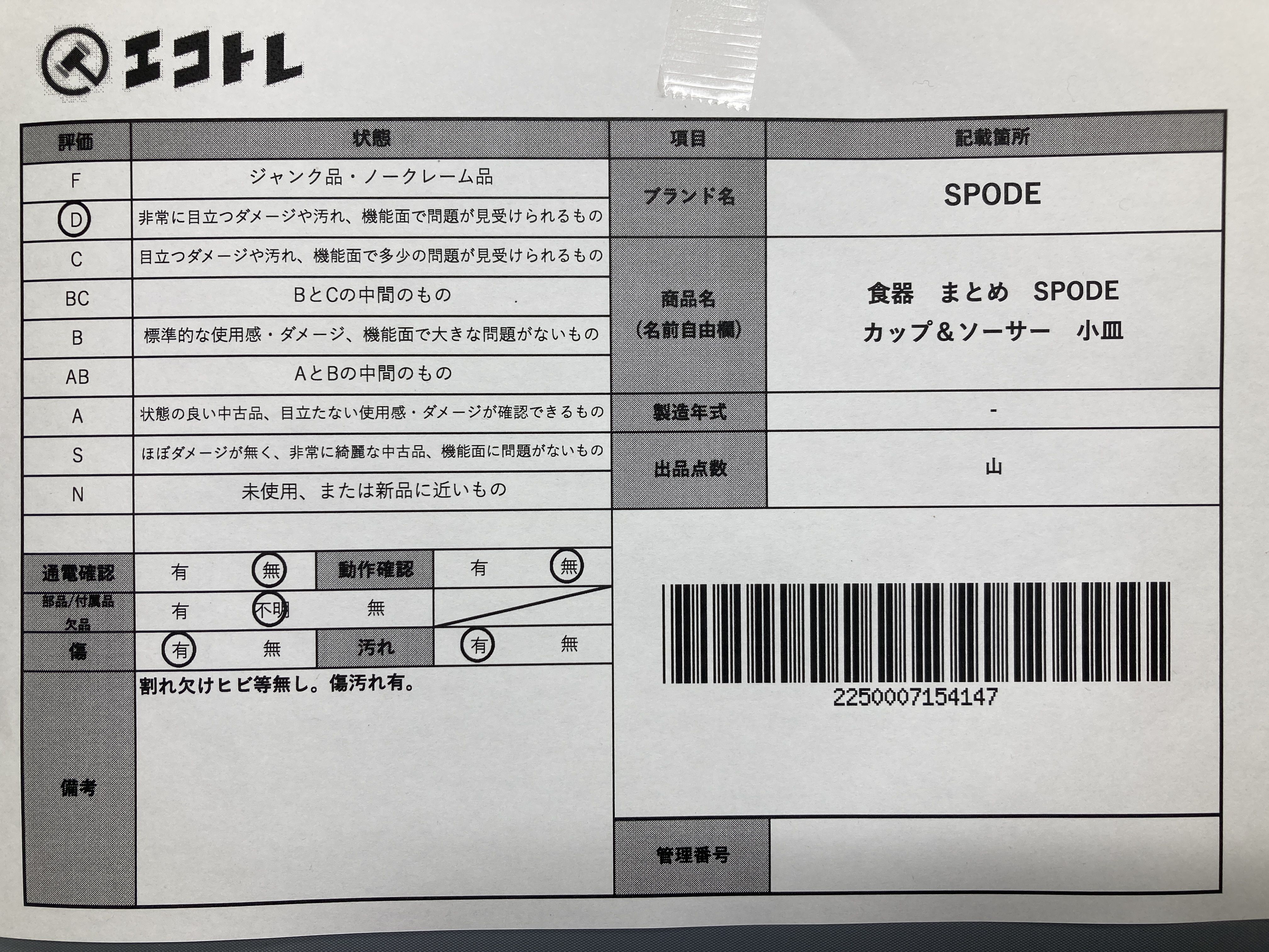 ▼SHIPPING TO JPN ONLY▼ 商品内容によって、JITBOXなどでの発送となる可能性がございます事ご理解下さい。年式などの商品情報詳細は写真にてご確認願います。※ご入札の際はご利用規約をよくお読みになってからのご参加お願いします。","タイプライン":"","カテゴリ":"陶器","形状コード":"カップ&ソーサー","付属品コード":"","シリアル・シール・型番":""