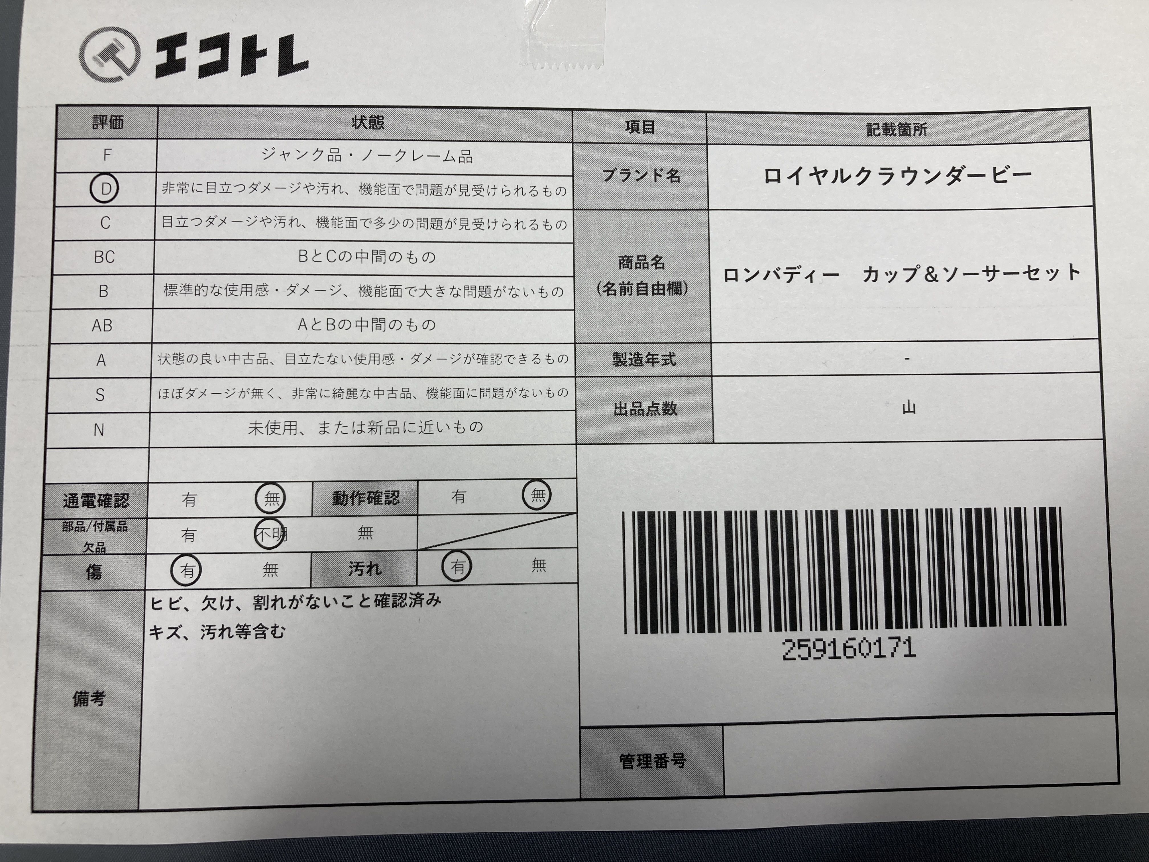 ▼SHIPPING TO JPN ONLY▼ 商品内容によって、JITBOXなどでの発送となる可能性がございます事ご理解下さい。年式などの商品情報詳細は写真にてご確認願います。※ご入札の際はご利用規約をよくお読みになってからのご参加お願いします。","タイプライン":"","カテゴリ":"陶器","形状コード":"カップ&ソーサー","付属品コード":"","シリアル・シール・型番":""