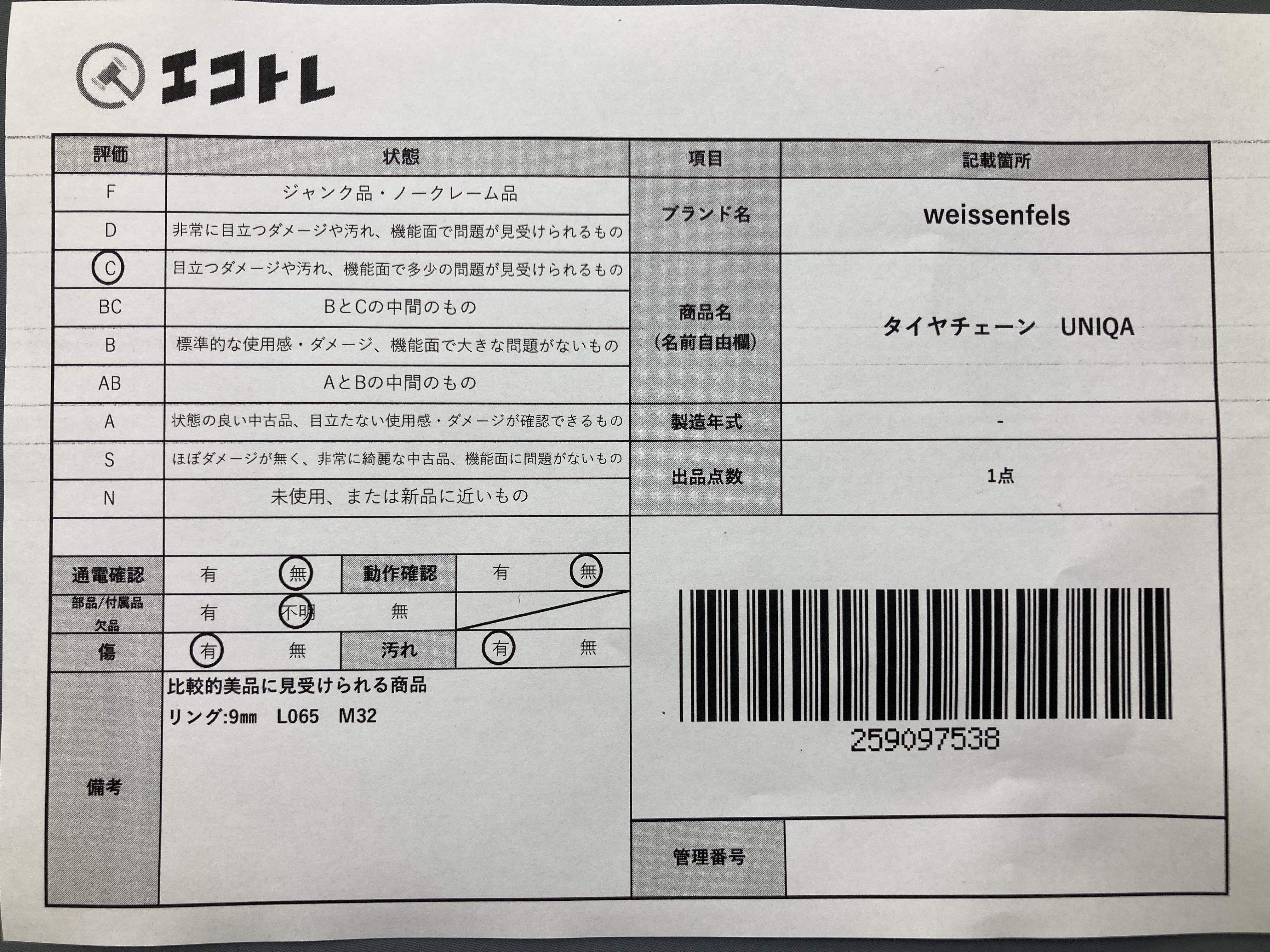 (E_0259)▼weissenfels タイヤチェーン UNIQA 車・バイク