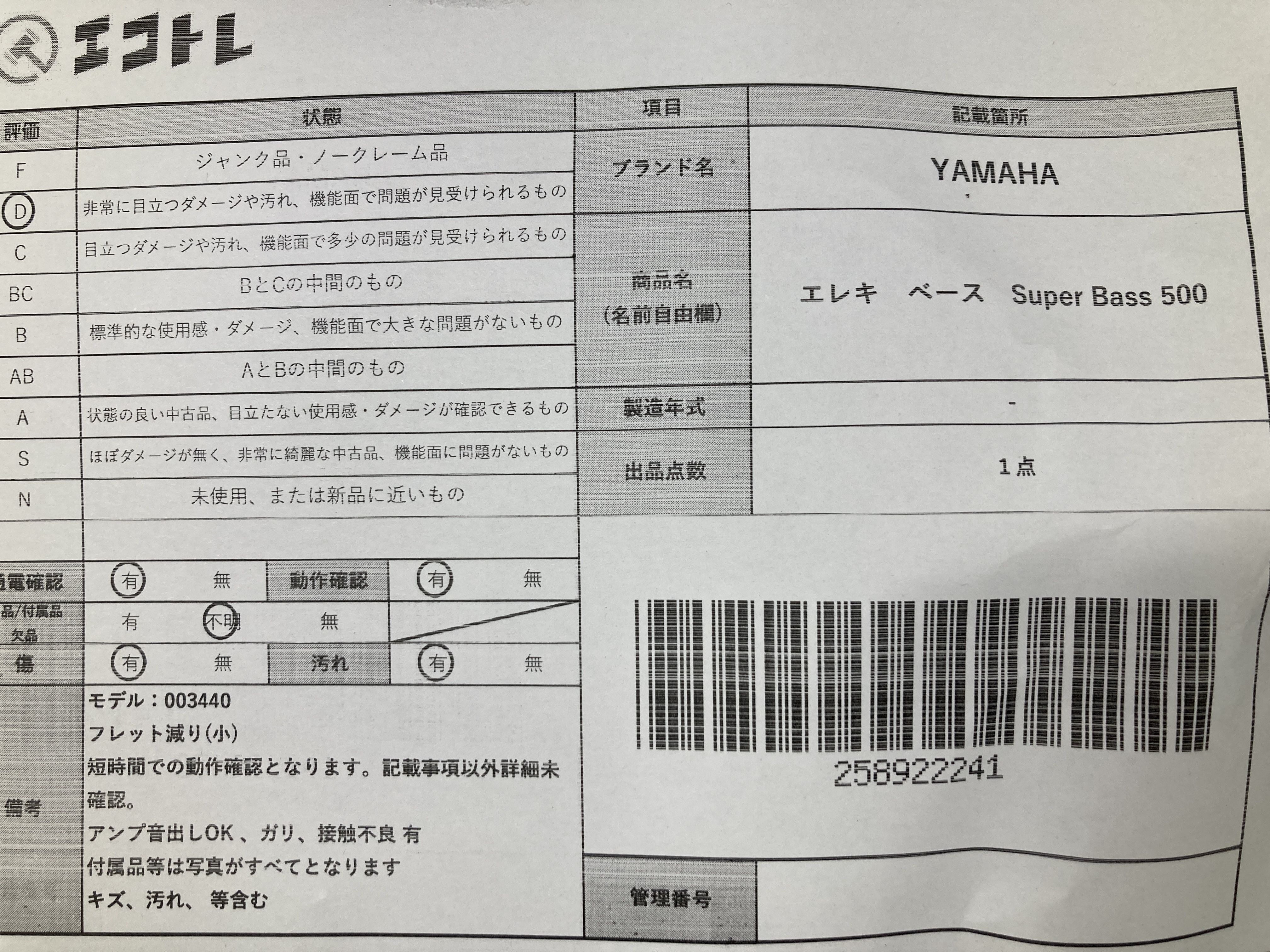 (E_0279)▼エレキ ベース Super Bass 500 YAMAHA エレキギター