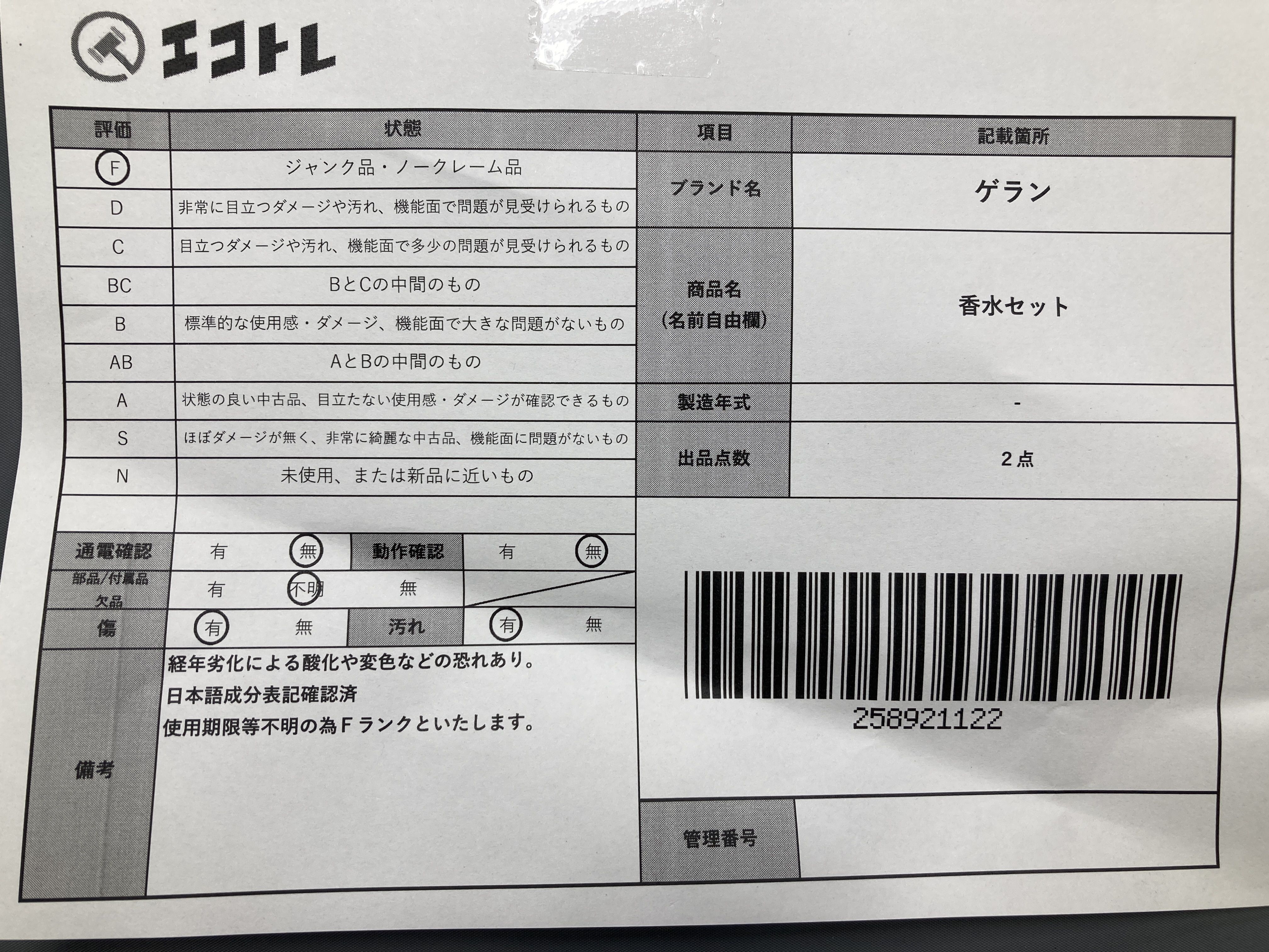 ▼SHIPPING TO JPN ONLY▼ 商品内容によって、JITBOXなどでの発送となる可能性がございます事ご理解下さい。年式などの商品情報詳細は写真にてご確認願います。※ご入札の際はご利用規約をよくお読みになってからのご参加お願いします。","タイプライン":"","カテゴリ":"消耗品","形状コード":"香水","付属品コード":"","シリアル・シール・型番":""