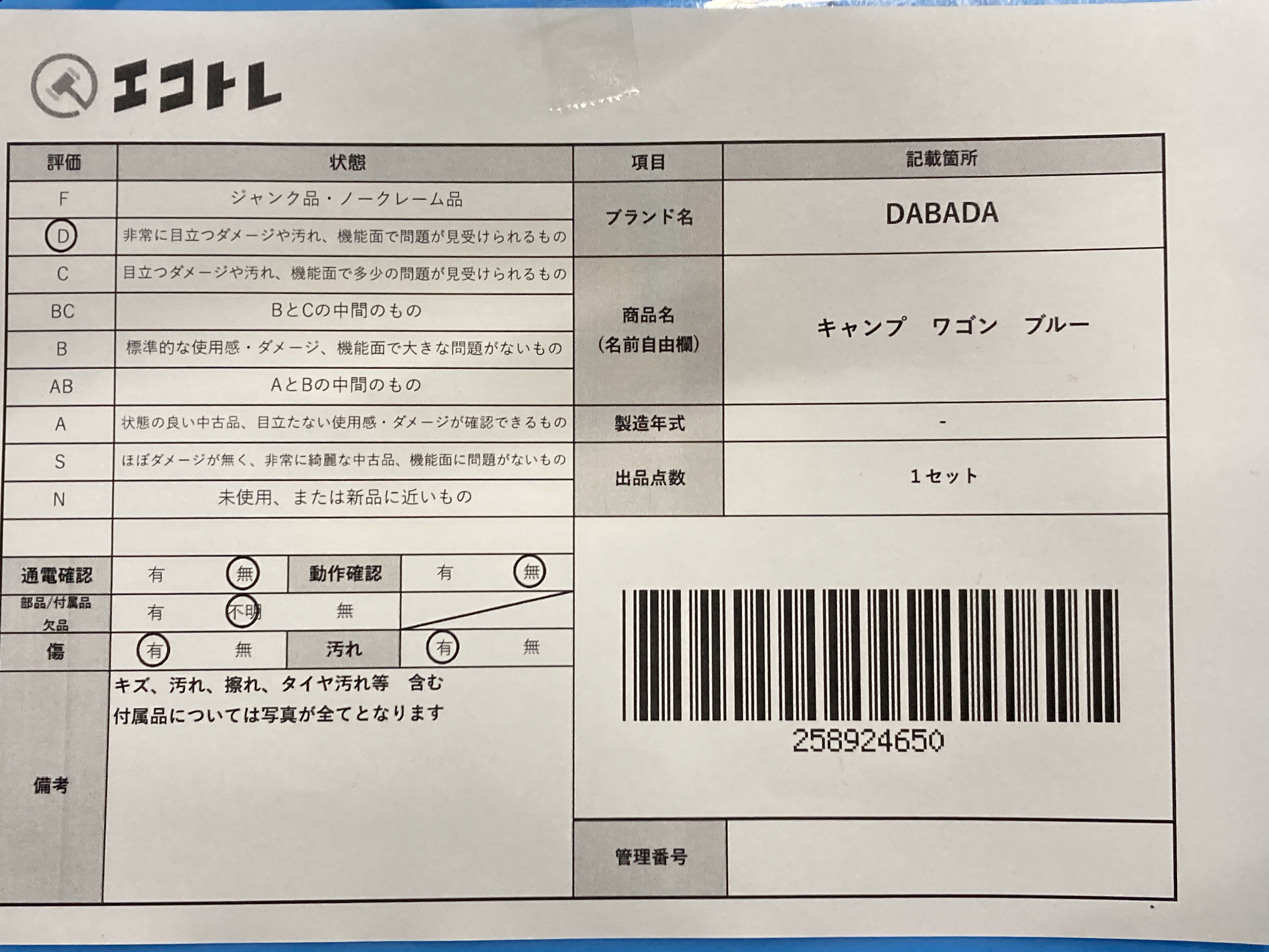 (E_0417)▼DABADA キャンプ ワゴン ブルー その他キャンプ用品