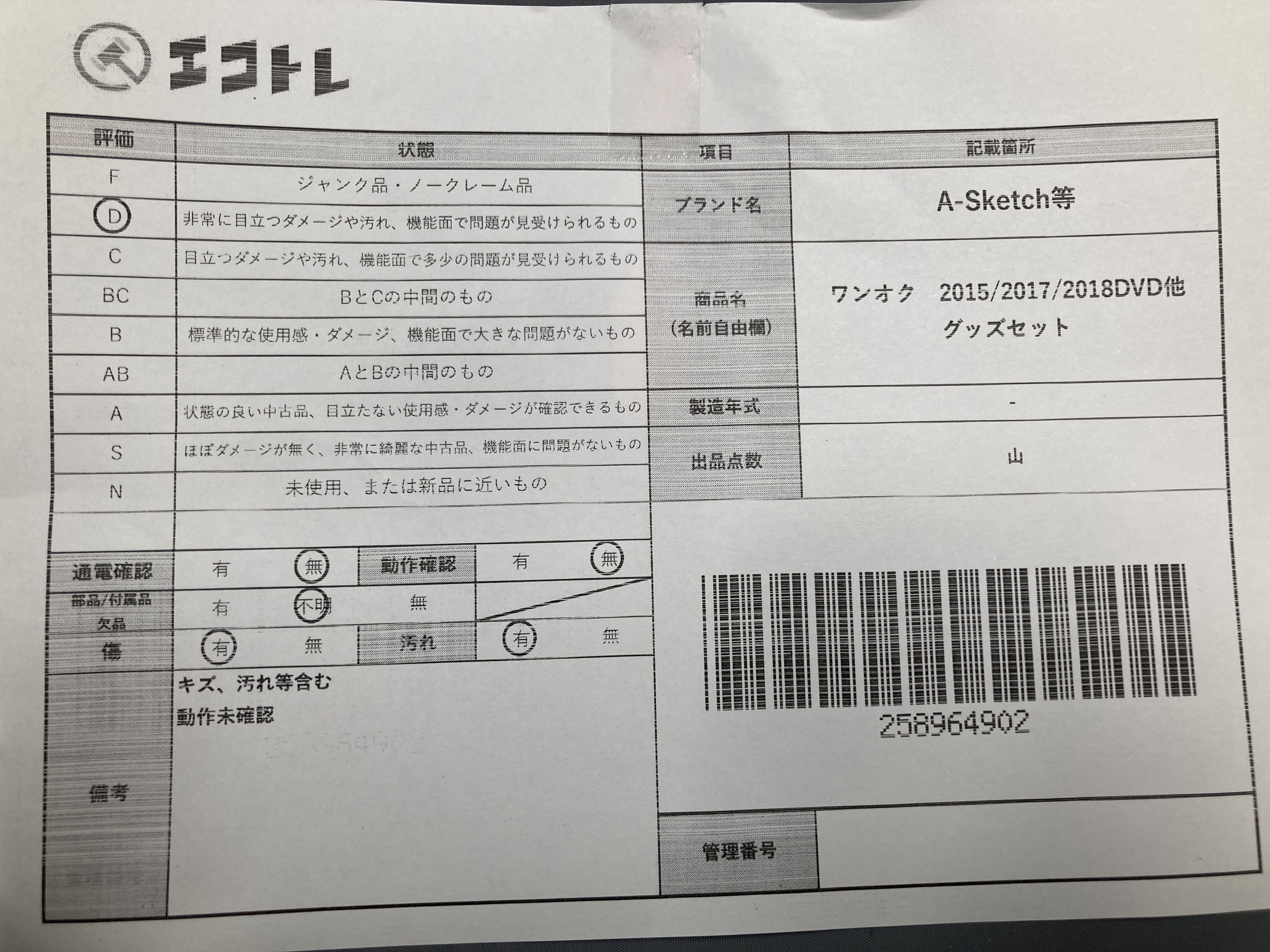 (E_0443)▼ワンオク 2015/2017/2018DVD他グッズセット A-Sketch等