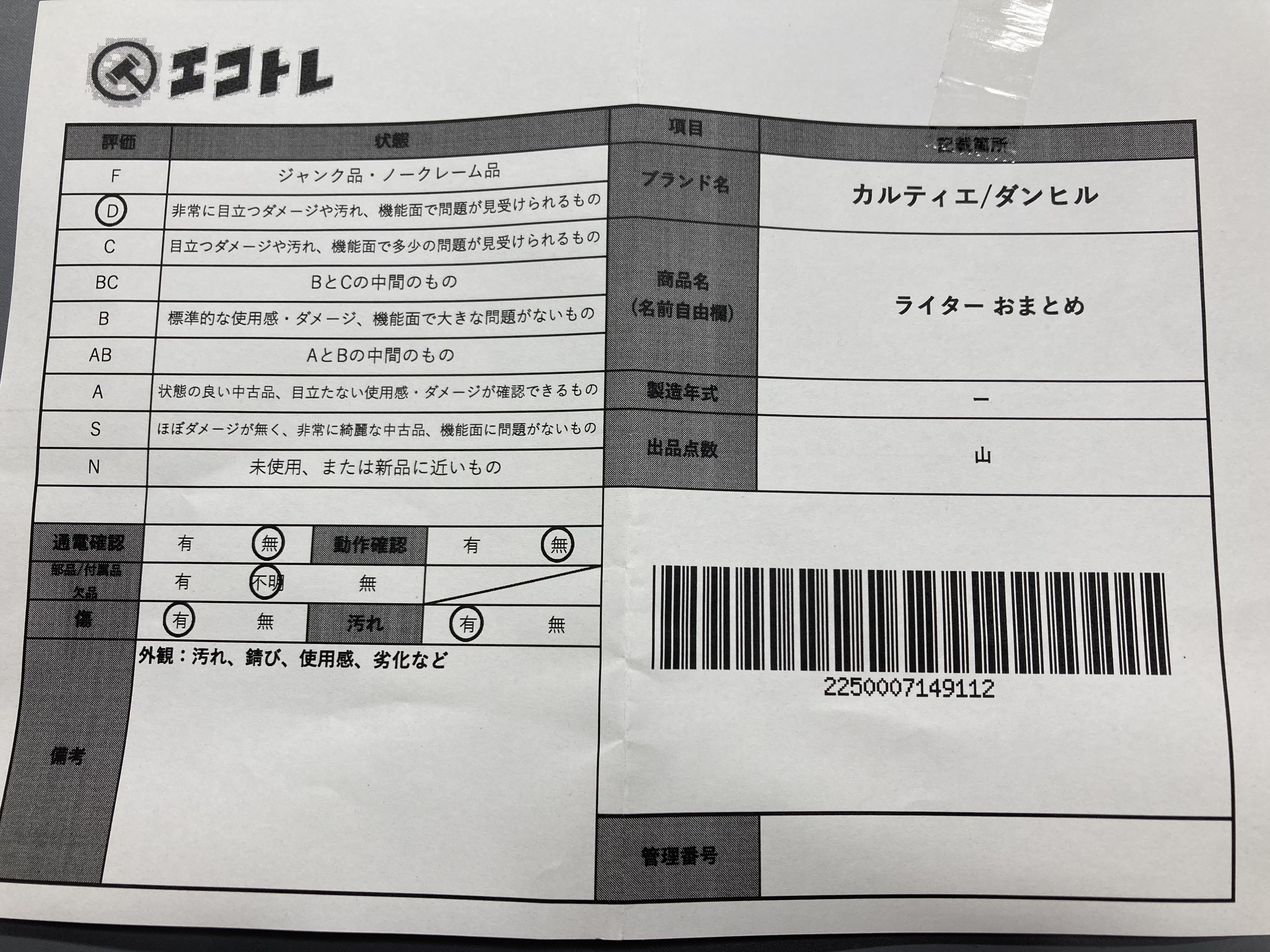 ▼SHIPPING TO JPN ONLY▼ 商品内容によって、JITBOXなどでの発送となる可能性がございます事ご理解下さい。年式などの商品情報詳細は写真にてご確認願います。※ご入札の際はご利用規約をよくお読みになってからのご参加お願いします。","タイプライン":"","カテゴリ":"喫煙具","形状コード":"ライター","付属品コード":"","シリアル・シール・型番":""