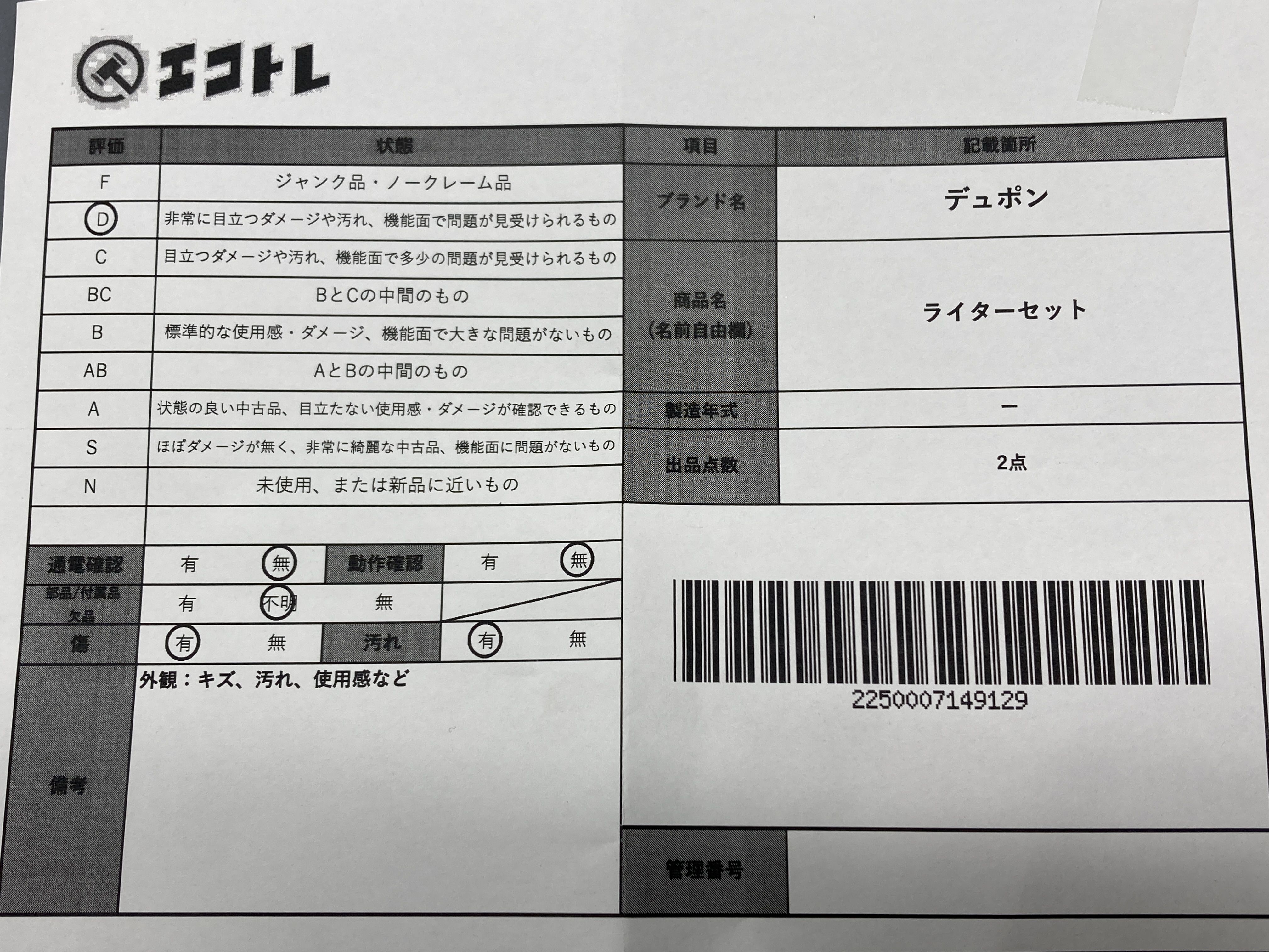 ▼SHIPPING TO JPN ONLY▼ 商品内容によって、JITBOXなどでの発送となる可能性がございます事ご理解下さい。年式などの商品情報詳細は写真にてご確認願います。※ご入札の際はご利用規約をよくお読みになってからのご参加お願いします。","タイプライン":"","カテゴリ":"喫煙具","形状コード":"ライター","付属品コード":"","シリアル・シール・型番":""