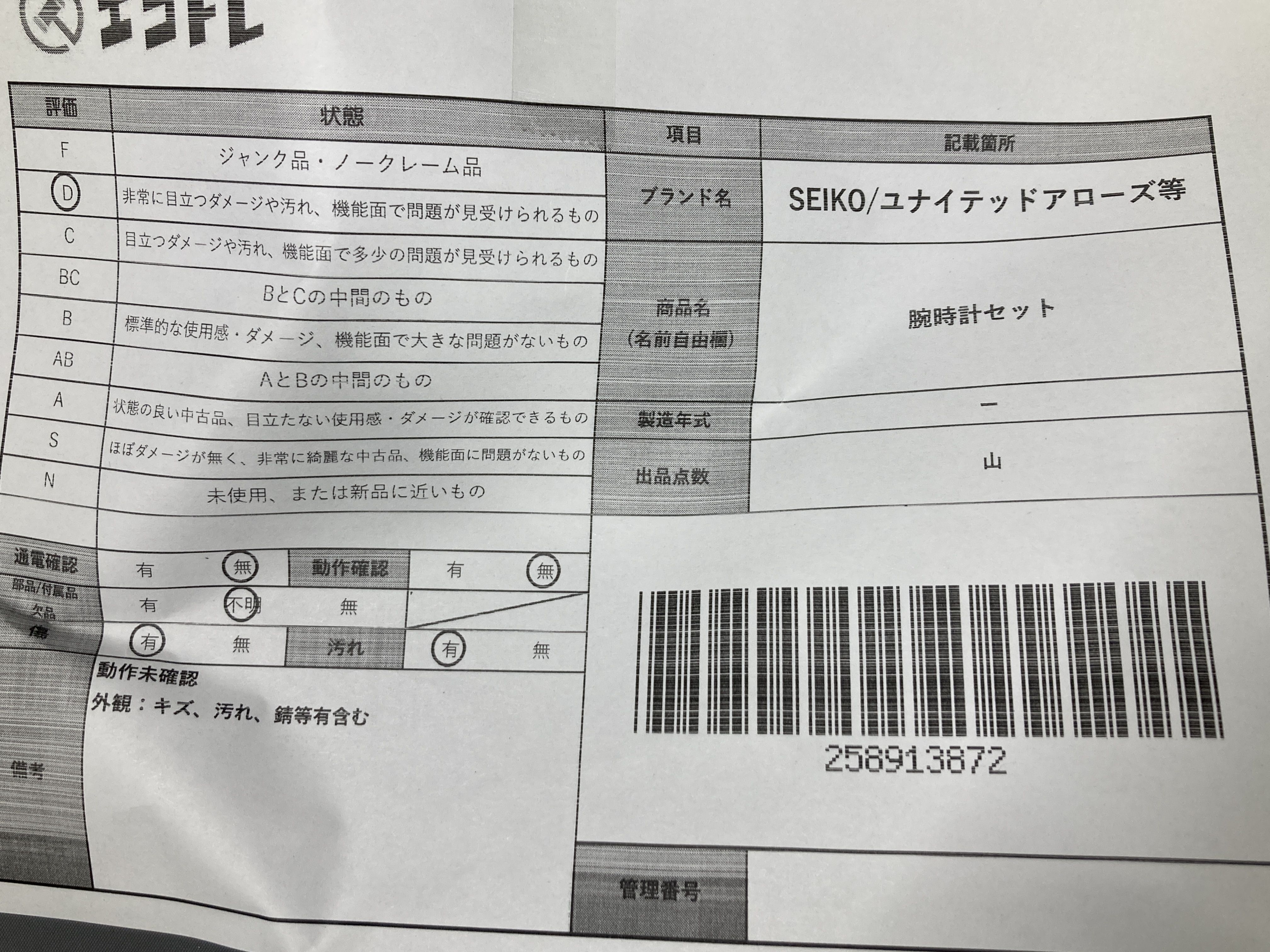 ▼SHIPPING TO JPN ONLY▼ 商品内容によって、JITBOXなどでの発送となる可能性がございます事ご理解下さい。年式などの商品情報詳細は写真にてご確認願います。※ご入札の際はご利用規約をよくお読みになってからのご参加お願いします。","タイプライン":"","カテゴリ":"時計","形状コード":"時計まとめ","付属品コード":"","シリアル・シール・型番":""