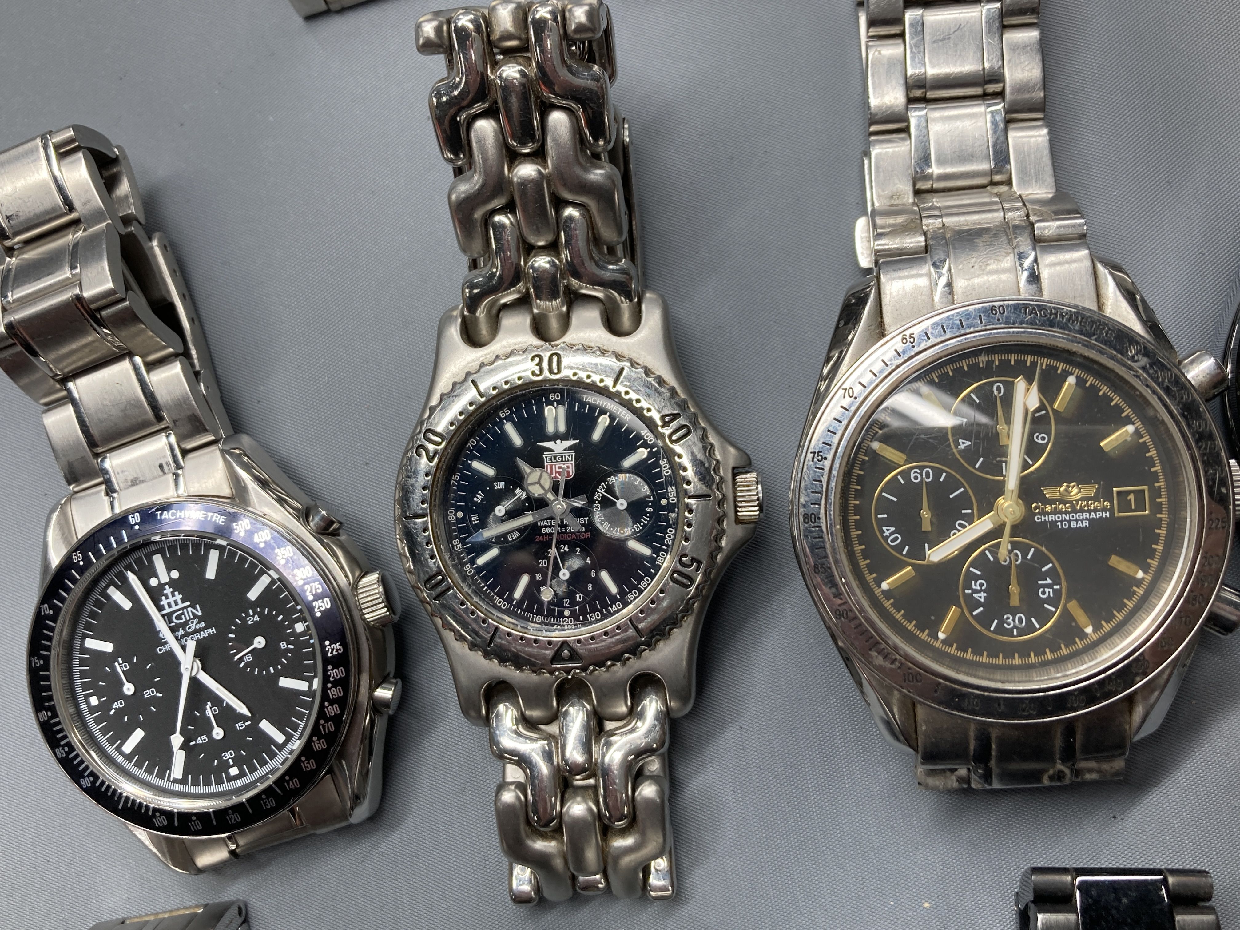 (B_0035)▼時計約20本セット クロノグラフ・ダイバーズ系 ジャンク品含む 時計まとめ ELGIN 等 時計まとめ(時計)