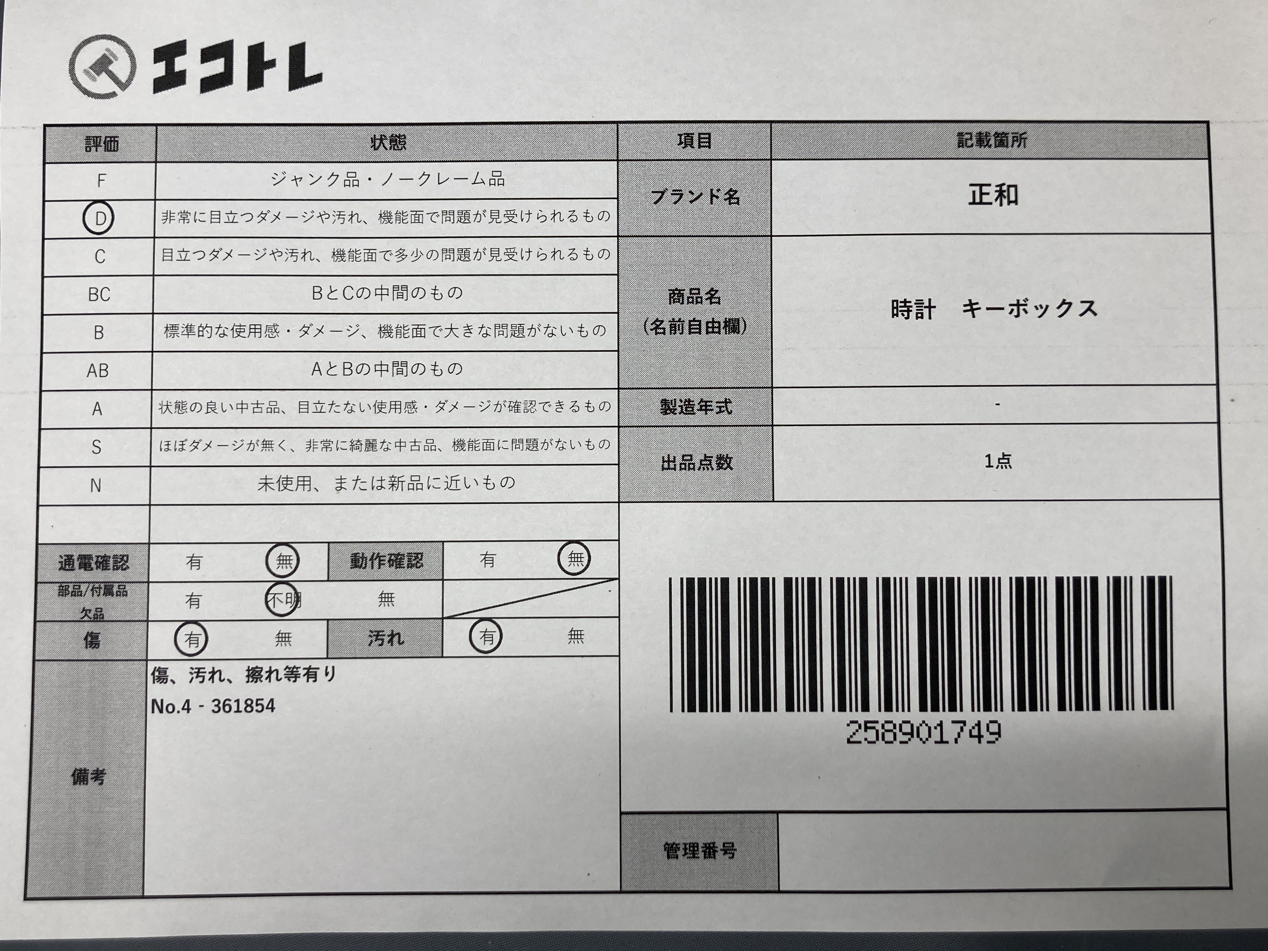 (B_0086)▼正和 時計 キーボックス 置時計