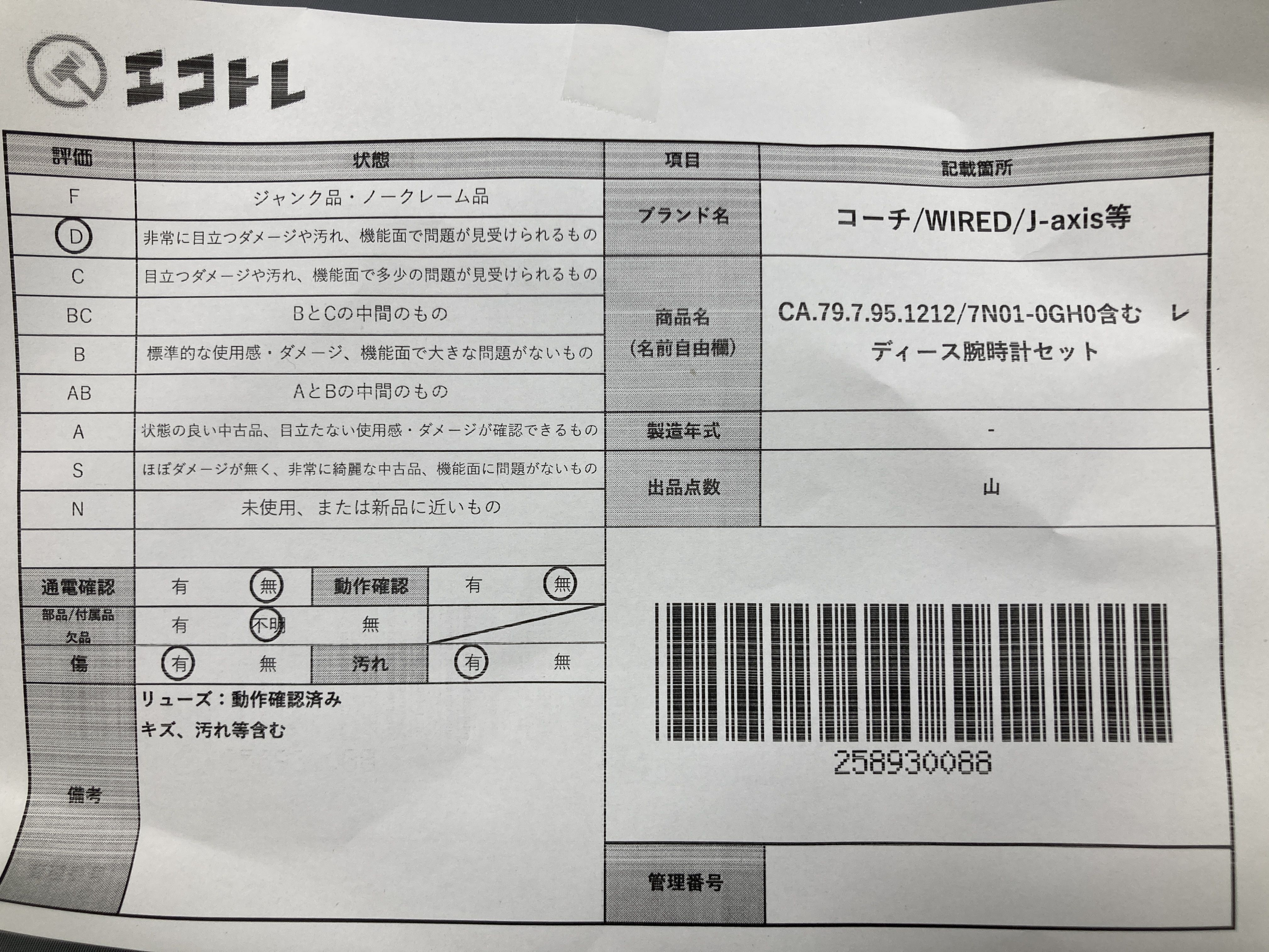 (B_0101)▼コーチ/WIRED/J-axis等 CA.79.7.95.1212/7N01-0GH0含む レディース腕時計セット