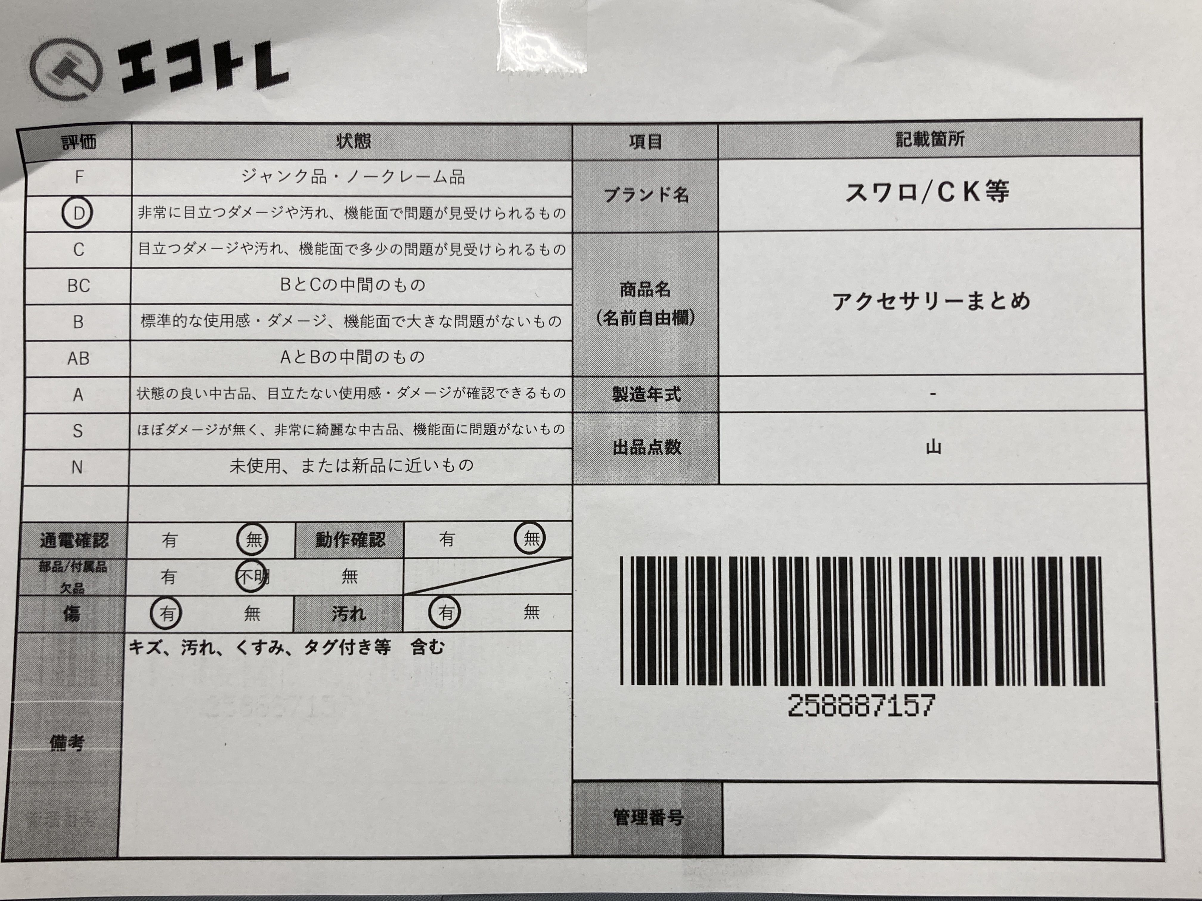 ▼SHIPPING TO JPN ONLY▼ 商品内容によって、JITBOXなどでの発送となる可能性がございます事ご理解下さい。年式などの商品情報詳細は写真にてご確認願います。※ご入札の際はご利用規約をよくお読みになってからのご参加お願いします。","タイプライン":"","カテゴリ":"アクセサリー","形状コード":"アクセサリーまとめ","付属品コード":"","シリアル・シール・型番":""