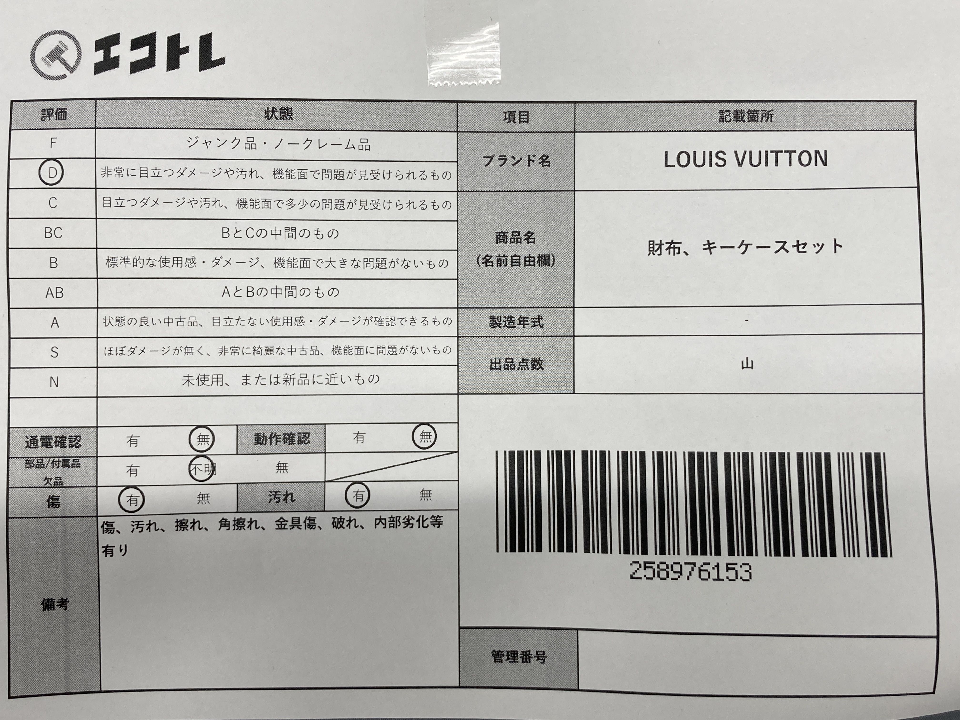 ▼SHIPPING TO JPN ONLY▼ 商品内容によって、JITBOXなどでの発送となる可能性がございます事ご理解下さい。年式などの商品情報詳細は写真にてご確認願います。※ご入札の際はご利用規約をよくお読みになってからのご参加お願いします。","タイプライン":"モノグラム","カテゴリ":"小物","形状コード":"財布","付属品コード":"","シリアル・シール・型番":""