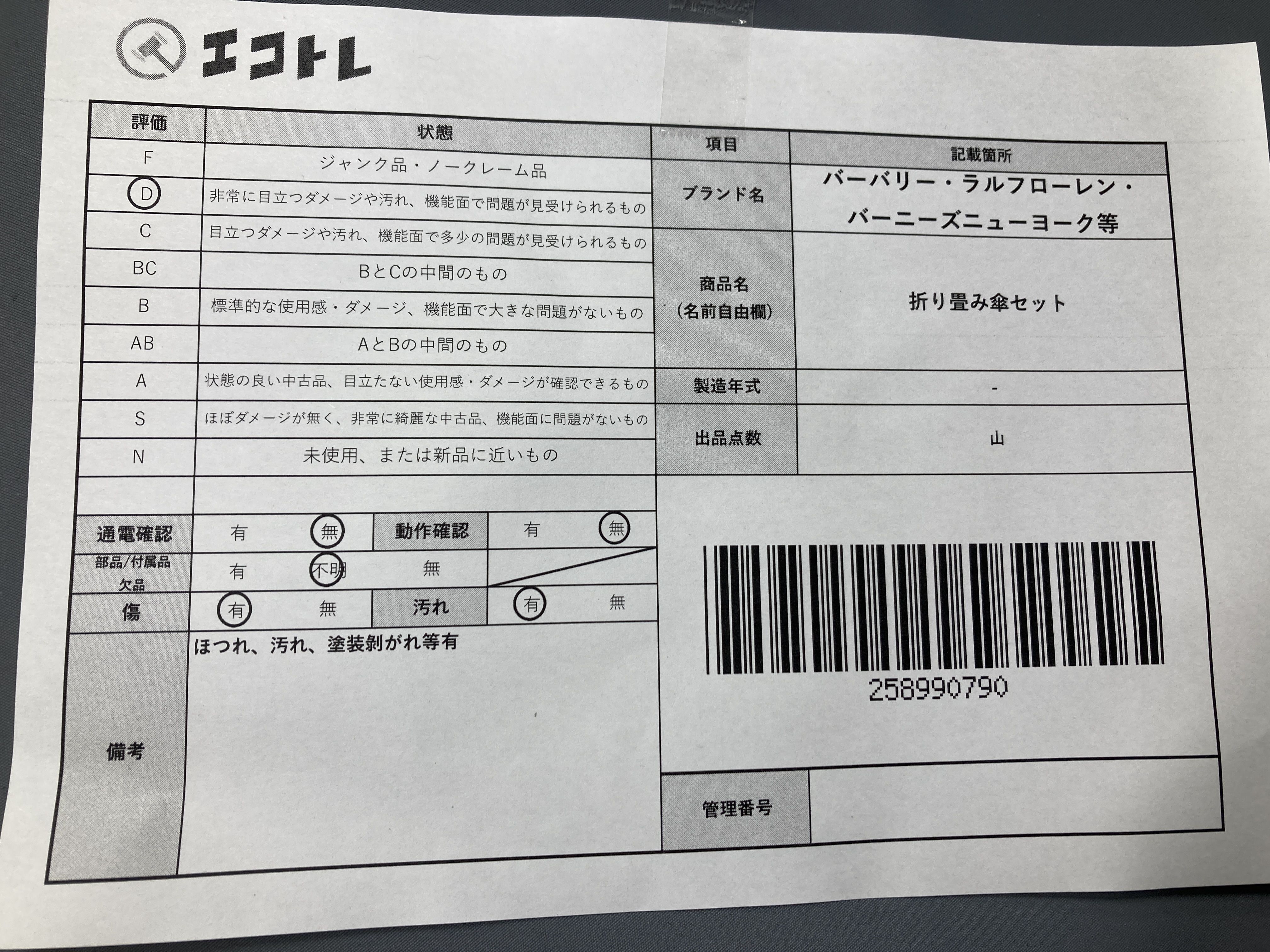▼SHIPPING TO JPN ONLY▼ 商品内容によって、JITBOXなどでの発送となる可能性がございます事ご理解下さい。年式などの商品情報詳細は写真にてご確認願います。※ご入札の際はご利用規約をよくお読みになってからのご参加お願いします。","タイプライン":"","カテゴリ":"小物","形状コード":"傘","付属品コード":"","シリアル・シール・型番":""