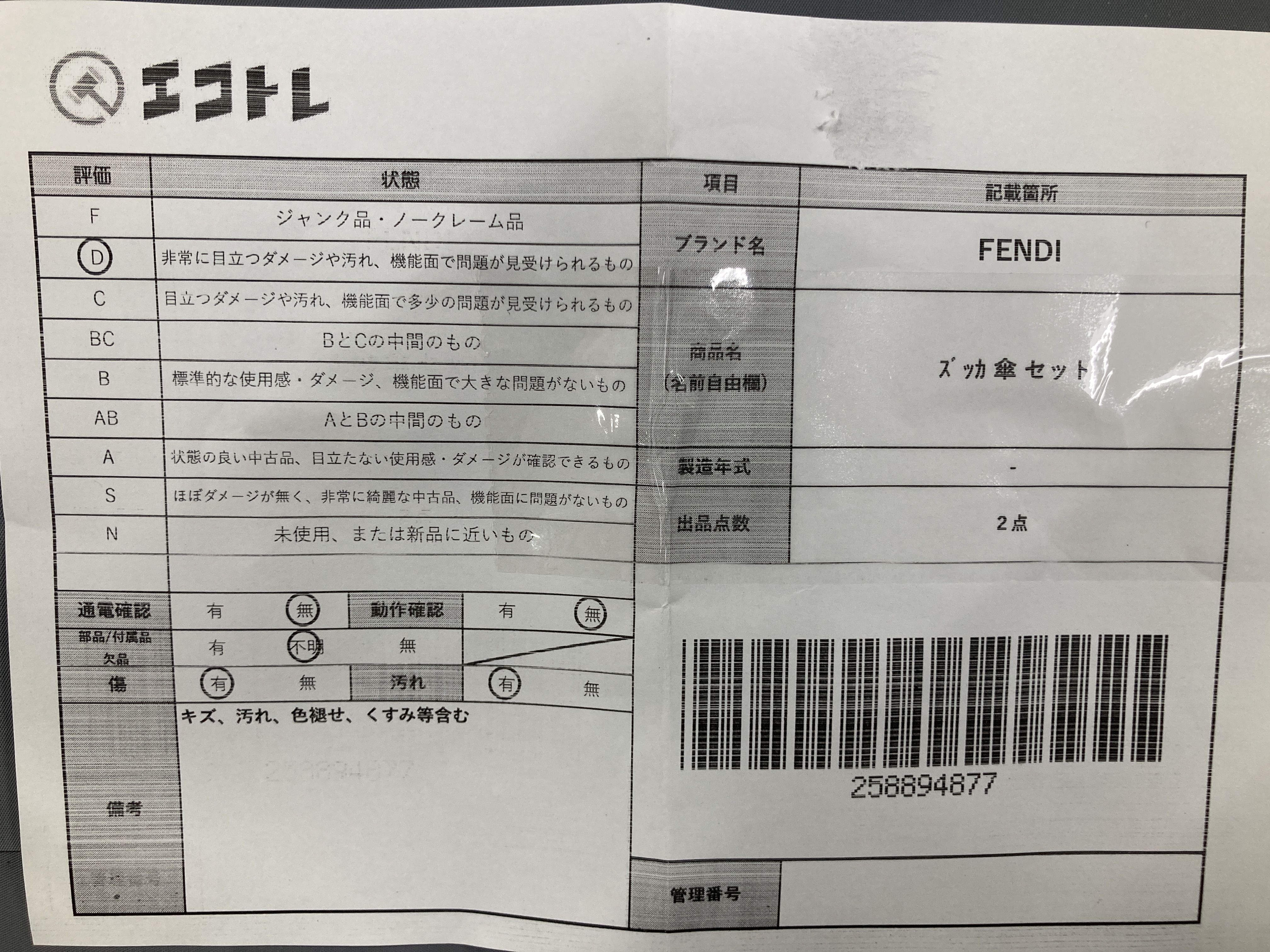 ▼SHIPPING TO JPN ONLY▼ 商品内容によって、JITBOXなどでの発送となる可能性がございます事ご理解下さい。年式などの商品情報詳細は写真にてご確認願います。※ご入札の際はご利用規約をよくお読みになってからのご参加お願いします。","タイプライン":"","カテゴリ":"小物","形状コード":"傘","付属品コード":"","シリアル・シール・型番":""