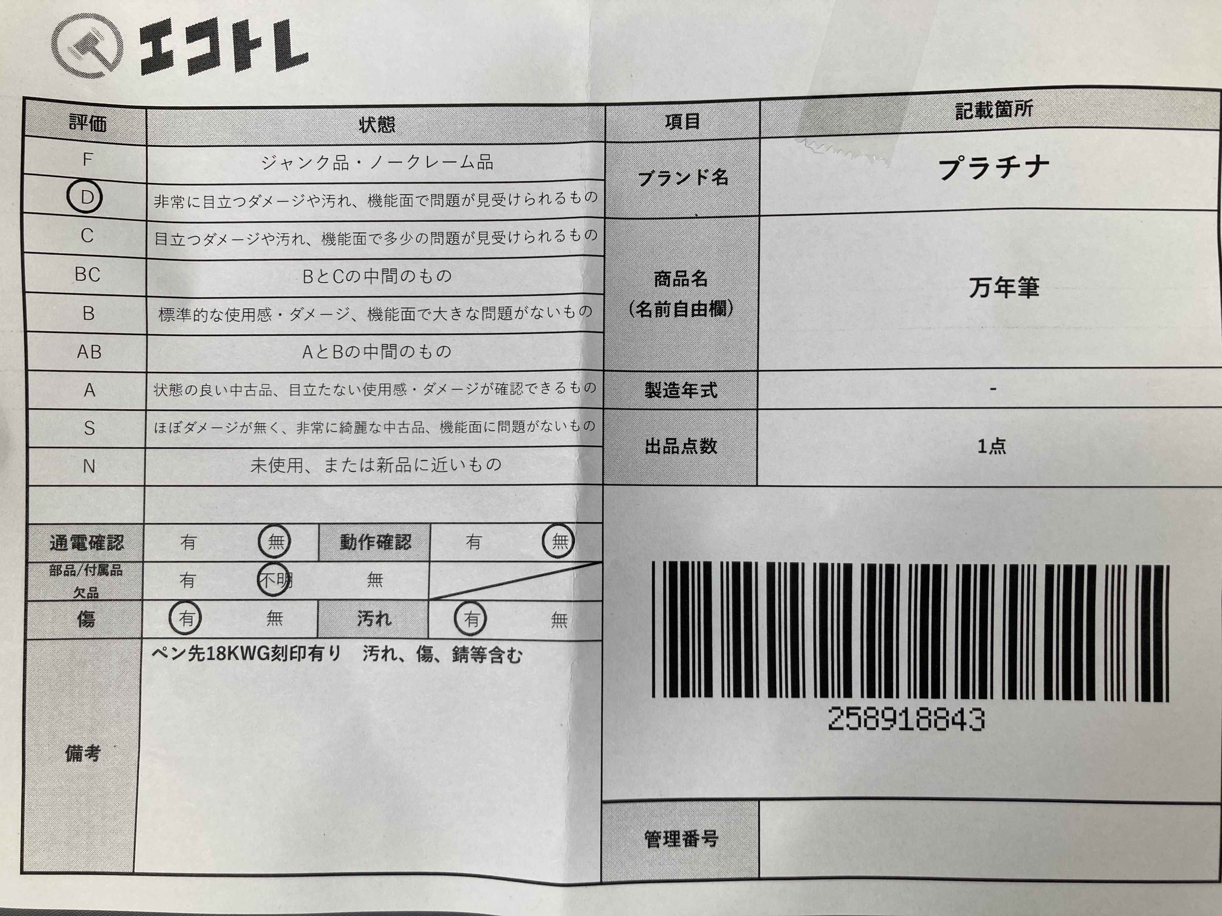 ▼SHIPPING TO JPN ONLY▼ 商品内容によって、JITBOXなどでの発送となる可能性がございます事ご理解下さい。年式などの商品情報詳細は写真にてご確認願います。※ご入札の際はご利用規約をよくお読みになってからのご参加お願いします。","タイプライン":"","カテゴリ":"小物","形状コード":"ペン・万年筆","付属品コード":"","シリアル・シール・型番":""