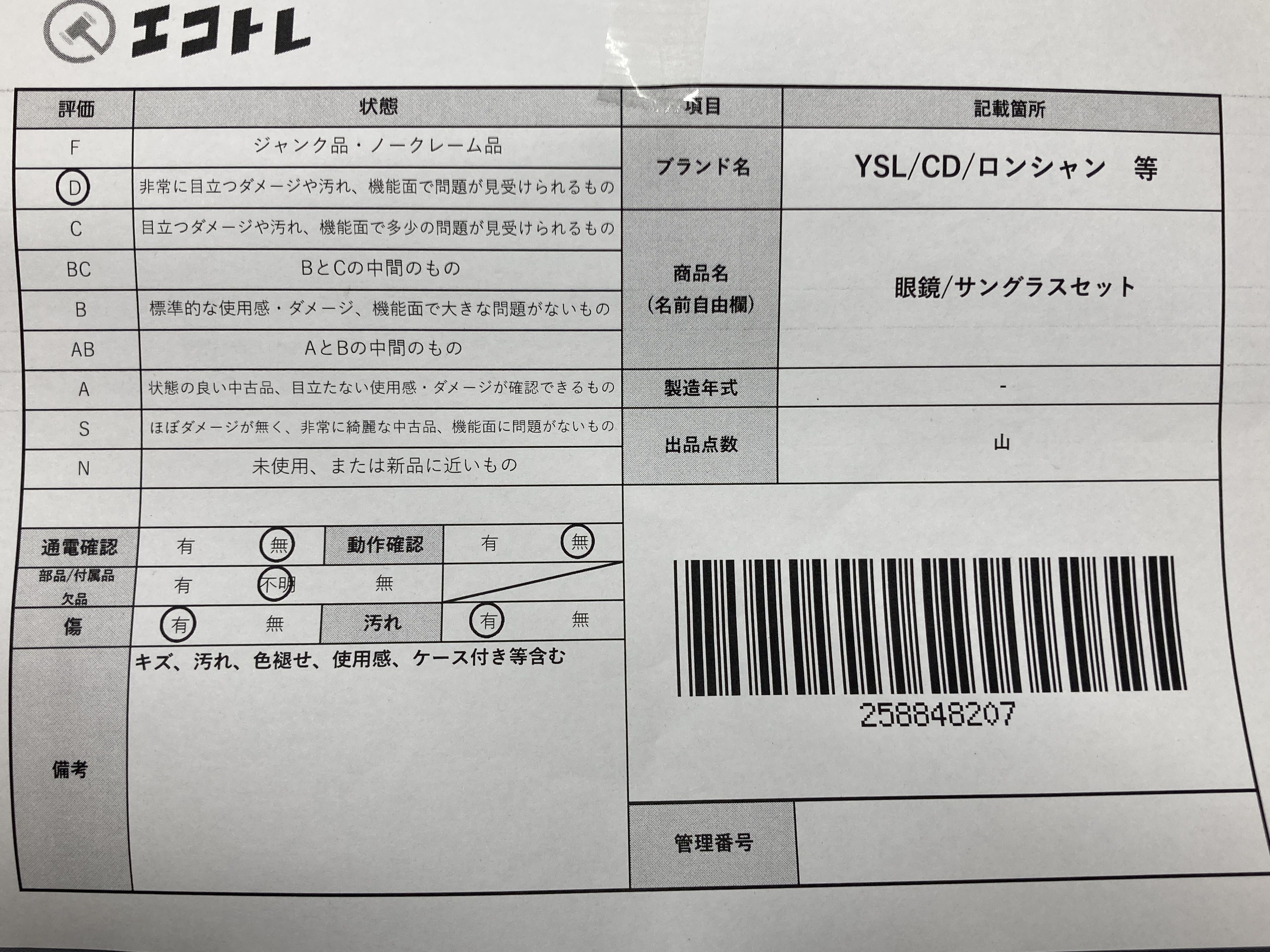 ◆CAN’T SHIPPING TO USA◆▼SHIPPING TO JPN ONLY▼ 商品内容によって、JITBOXなどでの発送となる可能性がございます事ご理解下さい。年式などの商品情報詳細は写真にてご確認願います。※ご入札の際はご利用規約をよくお読みになってからのご参加お願いします。","タイプライン":"","カテゴリ":"小物","形状コード":"サングラス・メガネ","付属品コード":"","シリアル・シール・型番":""