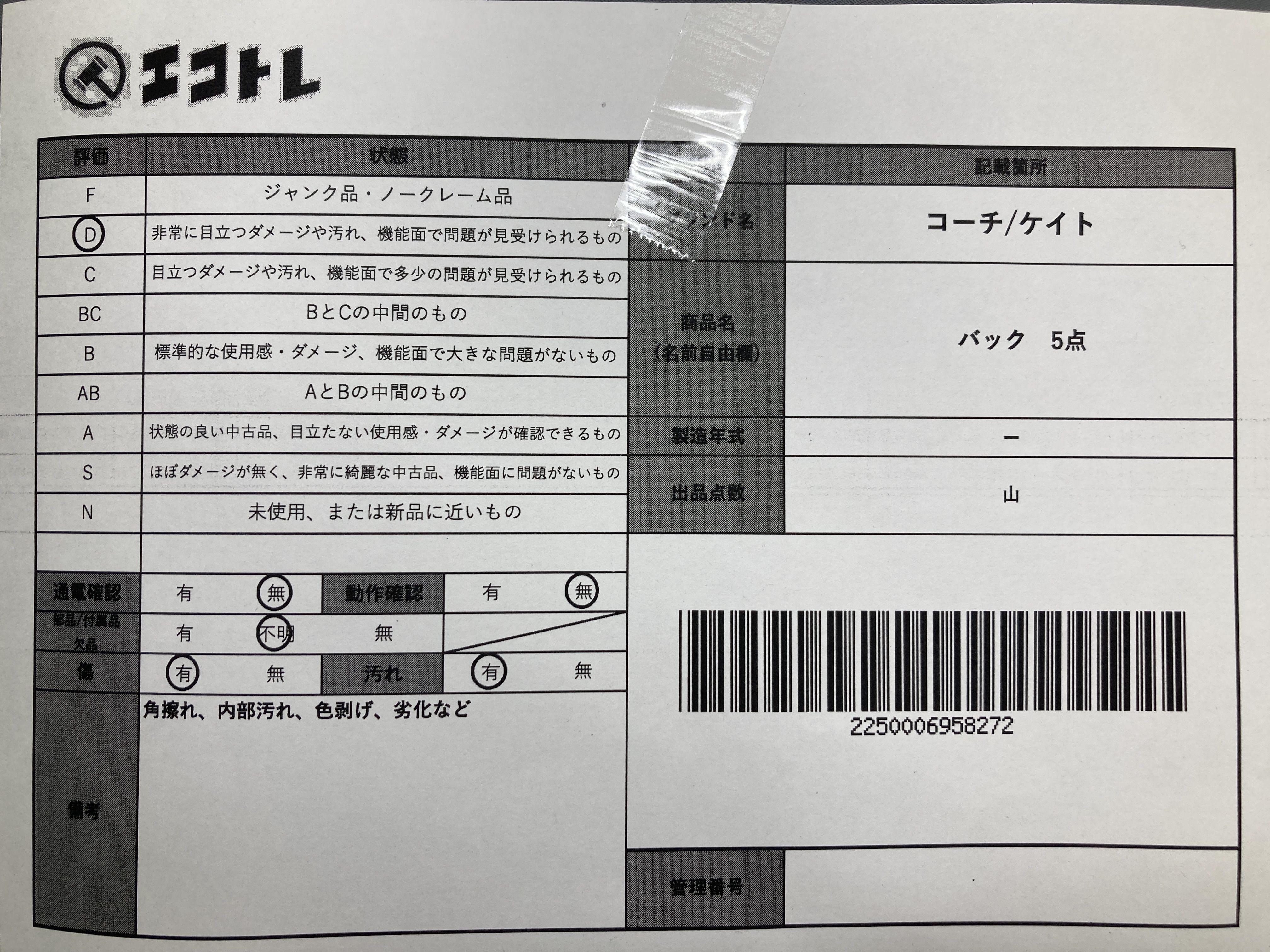 商品内容によって、JITBOXなどでの発送となる可能性がございます事ご理解下さい。年式などの商品情報詳細は写真にてご確認願います。※ご入札の際はご利用規約をよくお読みになってからのご参加お願いします。","タイプライン":"","カテゴリ":"バッグ","形状コード":"ハンドバッグ","付属品コード":"","シリアル・シール・型番":""