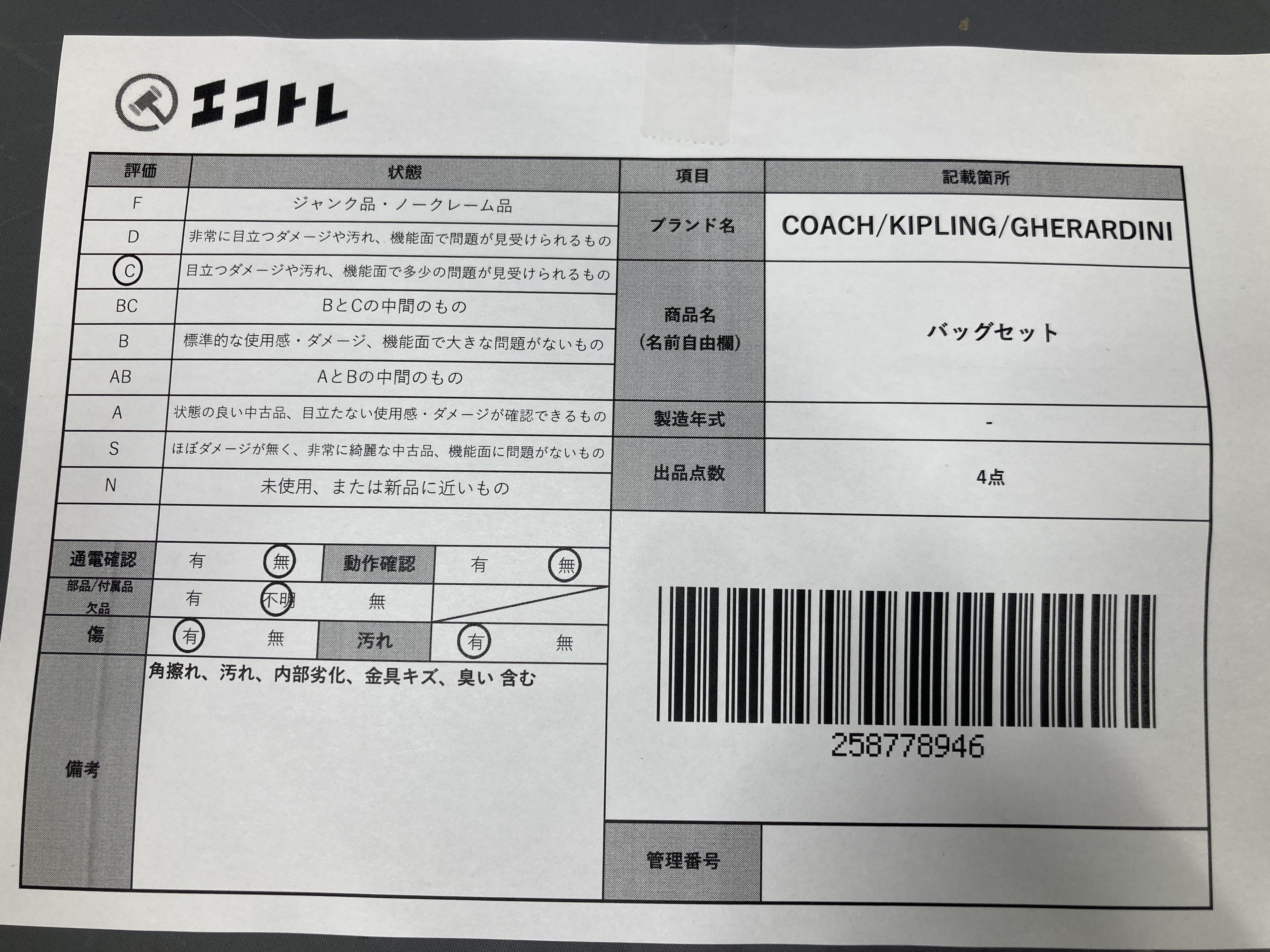 ▼SHIPPING TO JPN ONLY▼ 商品内容によって、JITBOXなどでの発送となる可能性がございます事ご理解下さい。年式などの商品情報詳細は写真にてご確認願います。※ご入札の際はご利用規約をよくお読みになってからのご参加お願いします。","タイプライン":"","カテゴリ":"バッグ","形状コード":"バッグ","付属品コード":"","シリアル・シール・型番":""