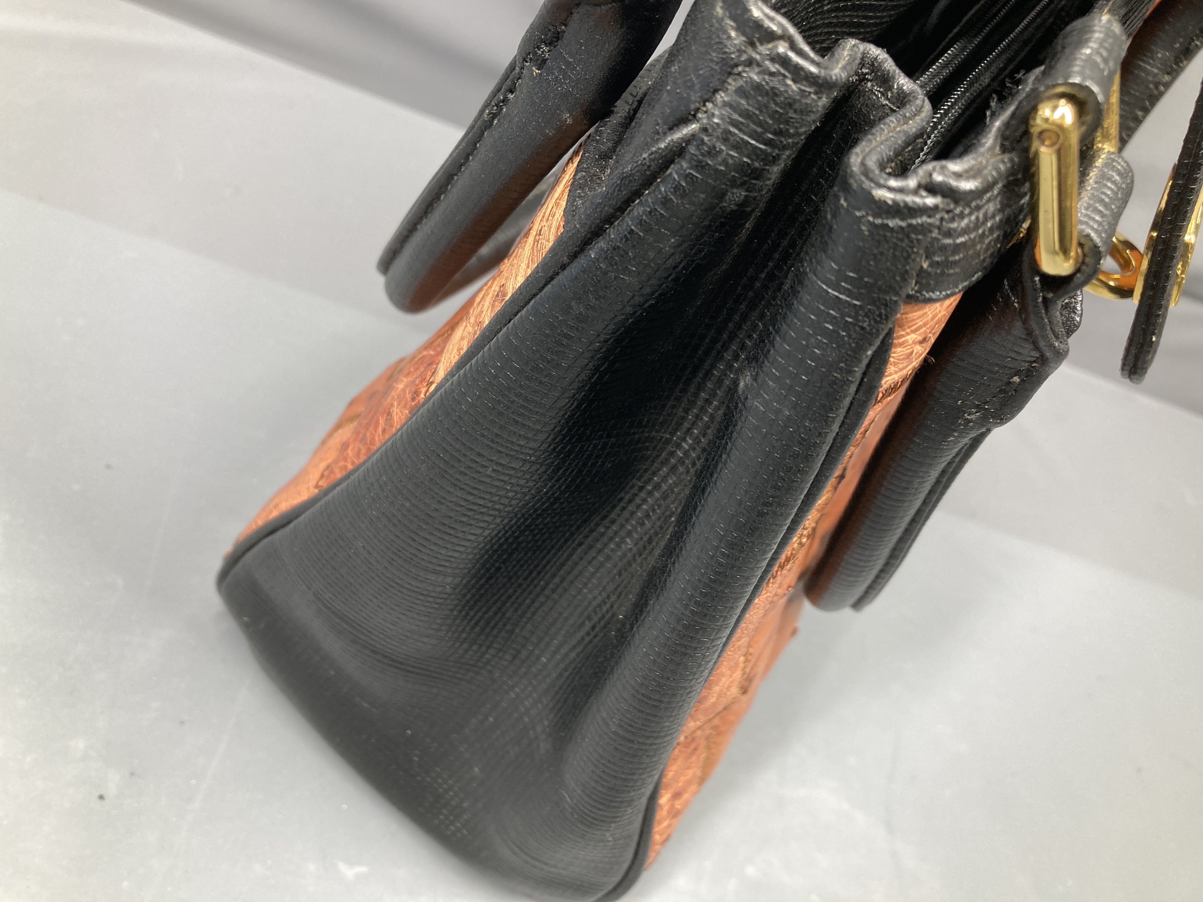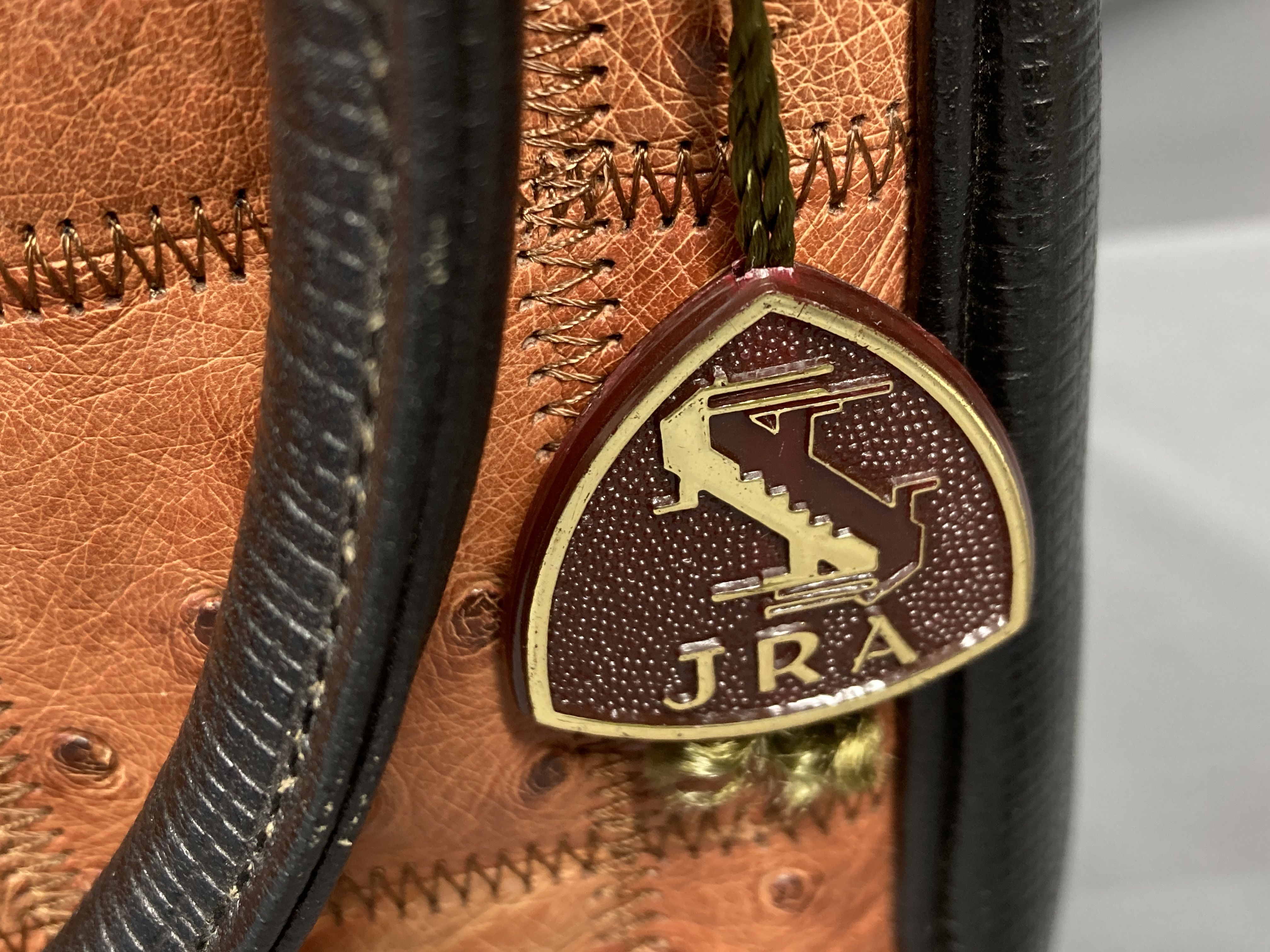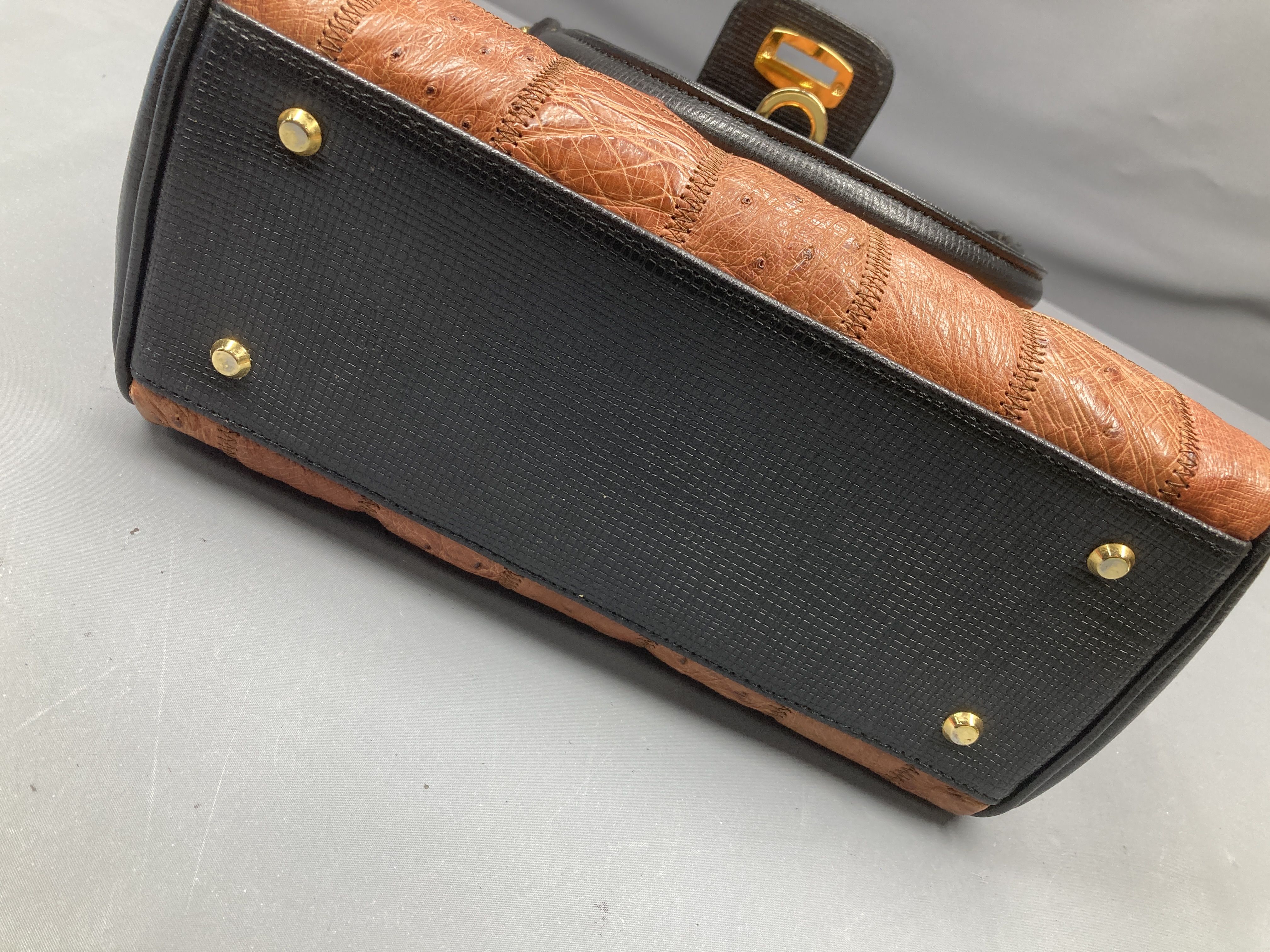 (A_0219)▼JRAタグ付き オーストリッチ パッチワークバッグ ハンドバッグ