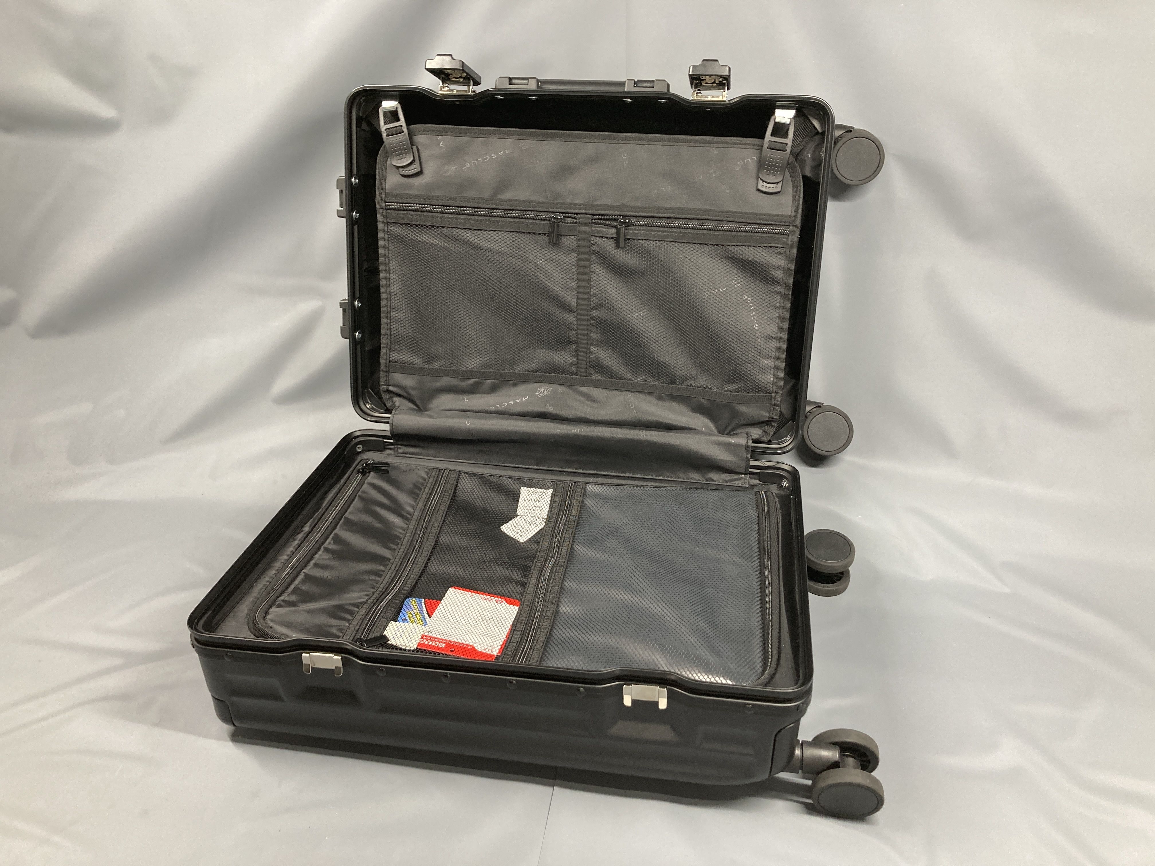 (A_0220)▼超軽量アルミスーツケース G2403 TSAロック/フロントオープン/ドリンクホルダー/USB MASCLUB キャリーバッグ