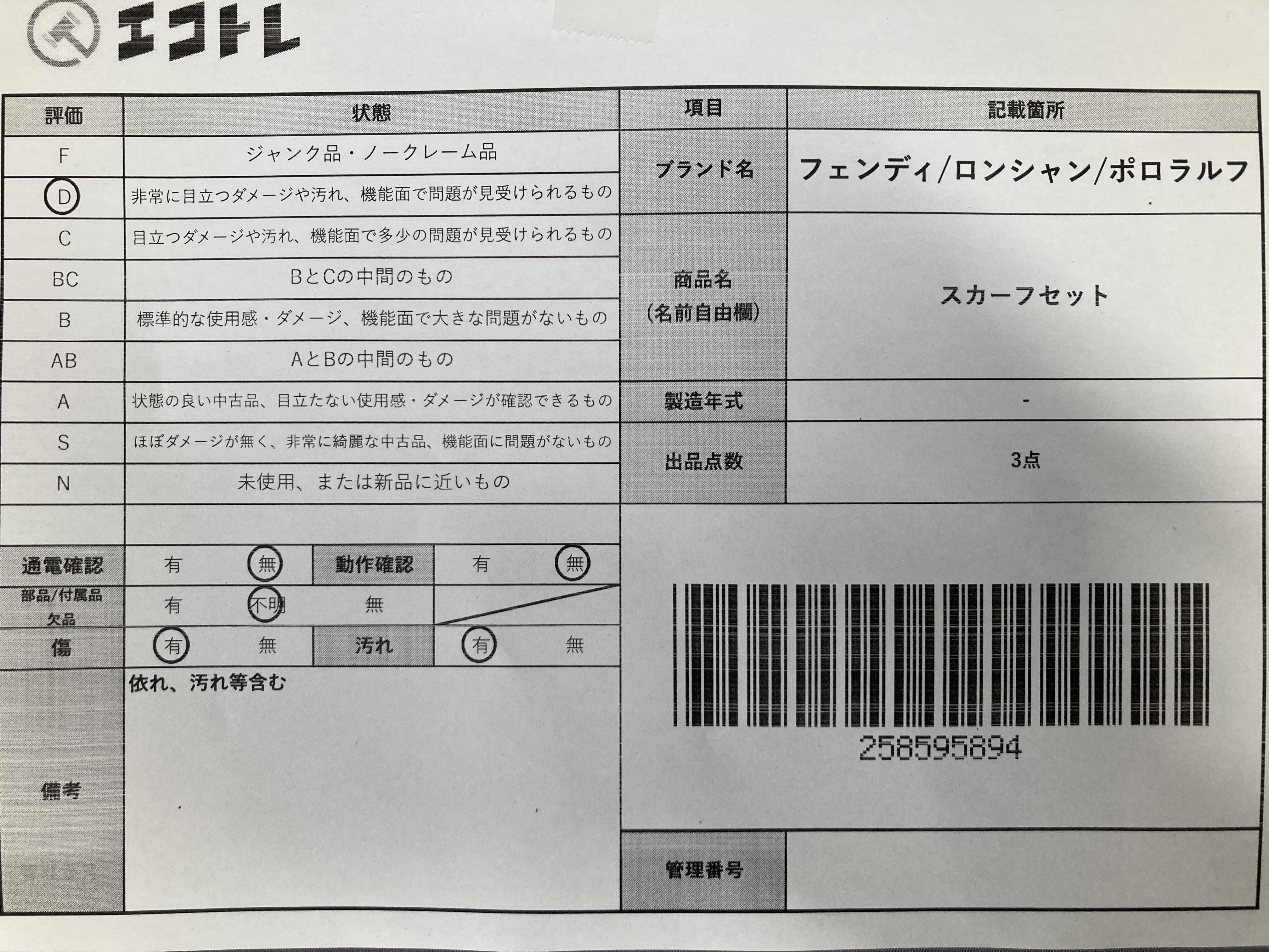 ▼SHIPPING TO JPN ONLY▼ 商品内容によって、JITBOXなどでの発送となる可能性がございます事ご理解下さい。年式などの商品情報詳細は写真にてご確認願います。※ご入札の際はご利用規約をよくお読みになってからのご参加お願いします。","タイプライン":"","カテゴリ":"アパレル","形状コード":"スカーフ","付属品コード":"","シリアル・シール・型番":""