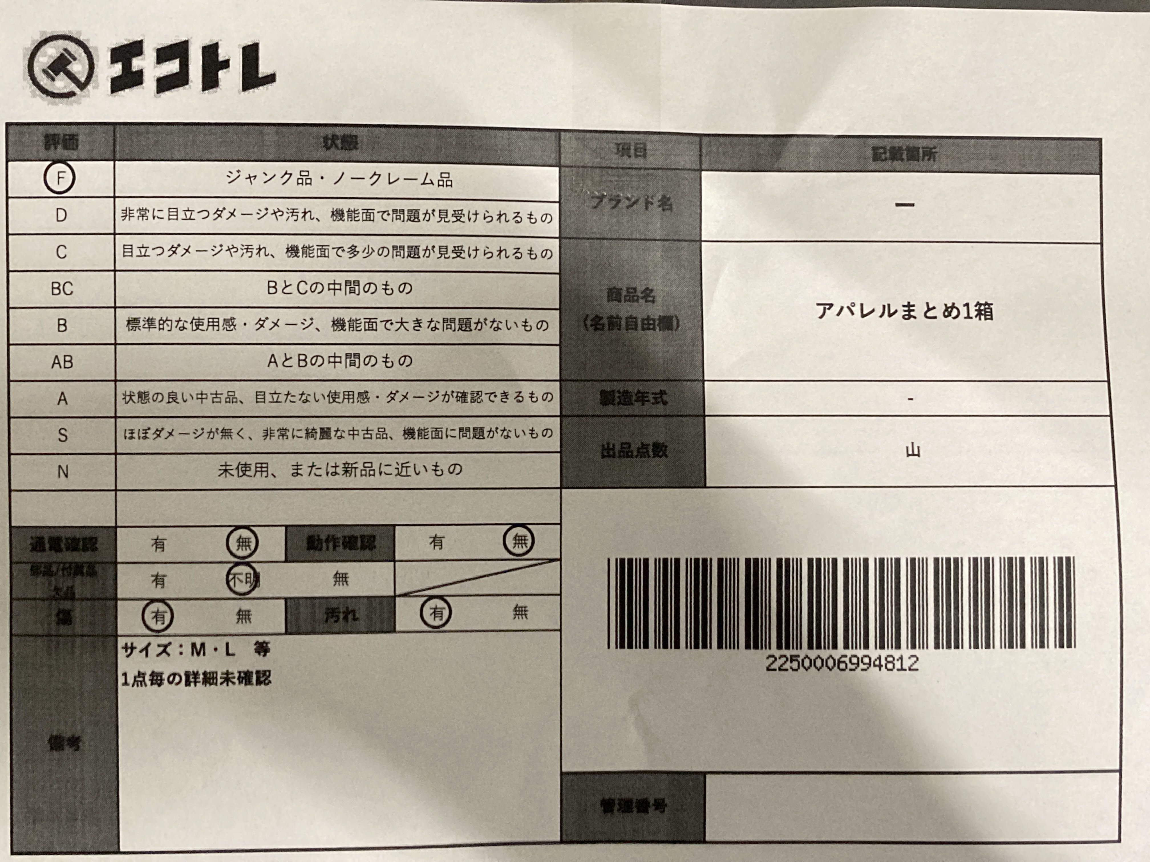 商品内容によって、JITBOXなどでの発送となる可能性がございます事ご理解下さい。年式などの商品情報詳細は写真にてご確認願います。※ご入札の際はご利用規約をよくお読みになってからのご参加お願いします。","タイプライン":"","カテゴリ":"アパレル","形状コード":"その他アパレル","付属品コード":"","シリアル・シール・型番":""