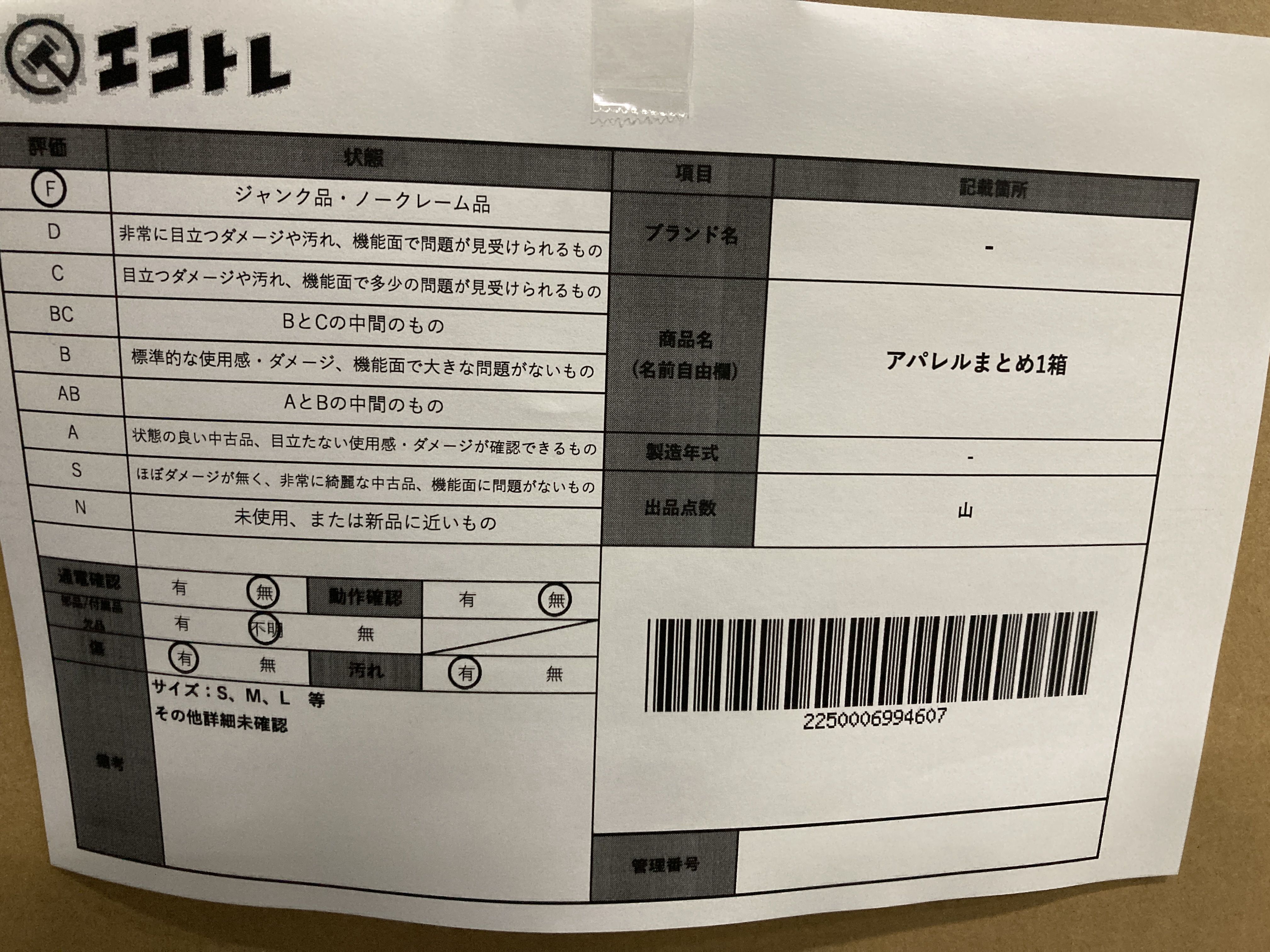 商品内容によって、JITBOXなどでの発送となる可能性がございます事ご理解下さい。年式などの商品情報詳細は写真にてご確認願います。※ご入札の際はご利用規約をよくお読みになってからのご参加お願いします。","タイプライン":"","カテゴリ":"アパレル","形状コード":"その他アパレル","付属品コード":"","シリアル・シール・型番":""