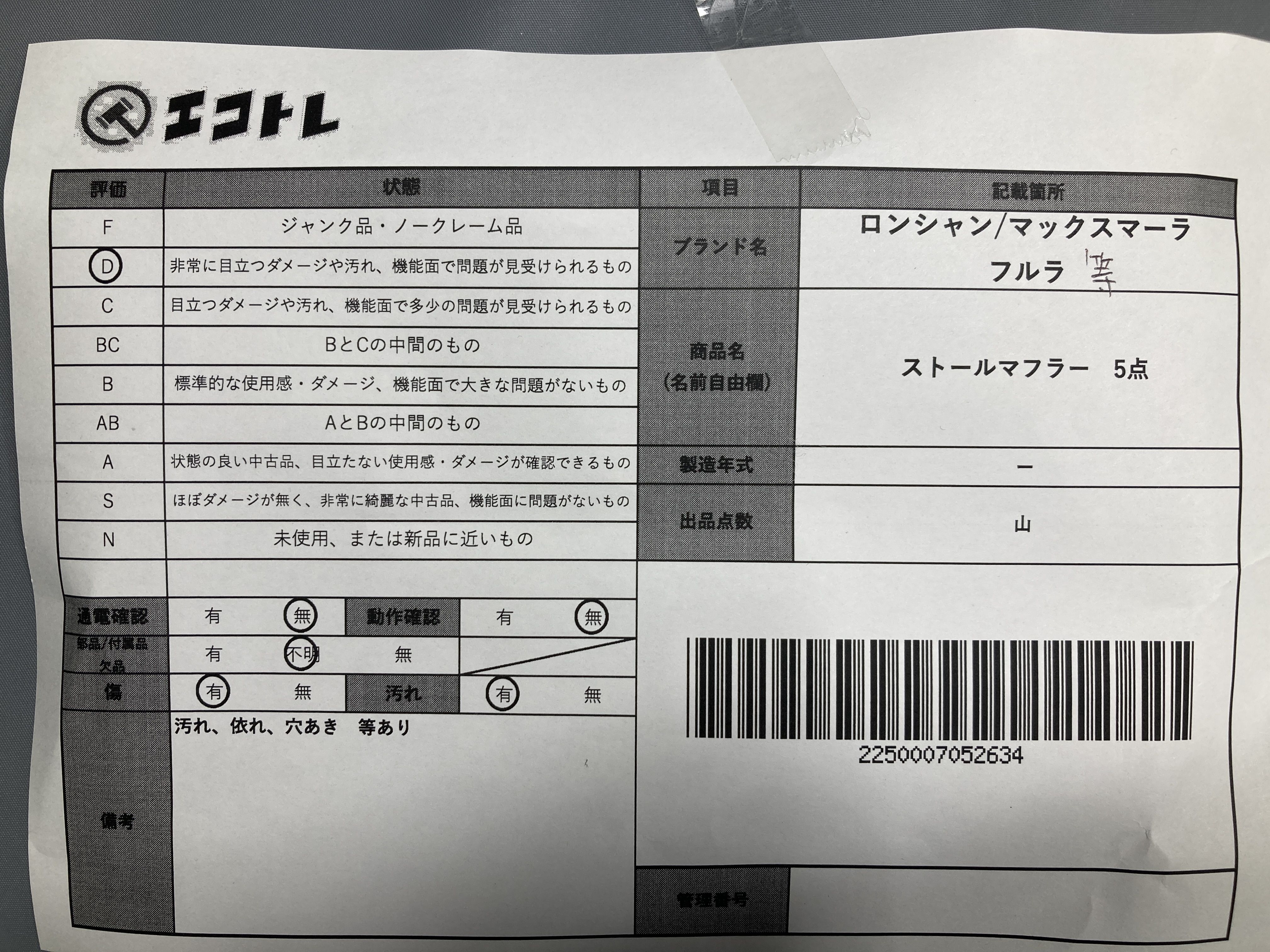 ▼SHIPPING TO JPN ONLY▼ 商品内容によって、JITBOXなどでの発送となる可能性がございます事ご理解下さい。年式などの商品情報詳細は写真にてご確認願います。※ご入札の際はご利用規約をよくお読みになってからのご参加お願いします。","タイプライン":"","カテゴリ":"アパレル","形状コード":"マフラー","付属品コード":"","シリアル・シール・型番":""
