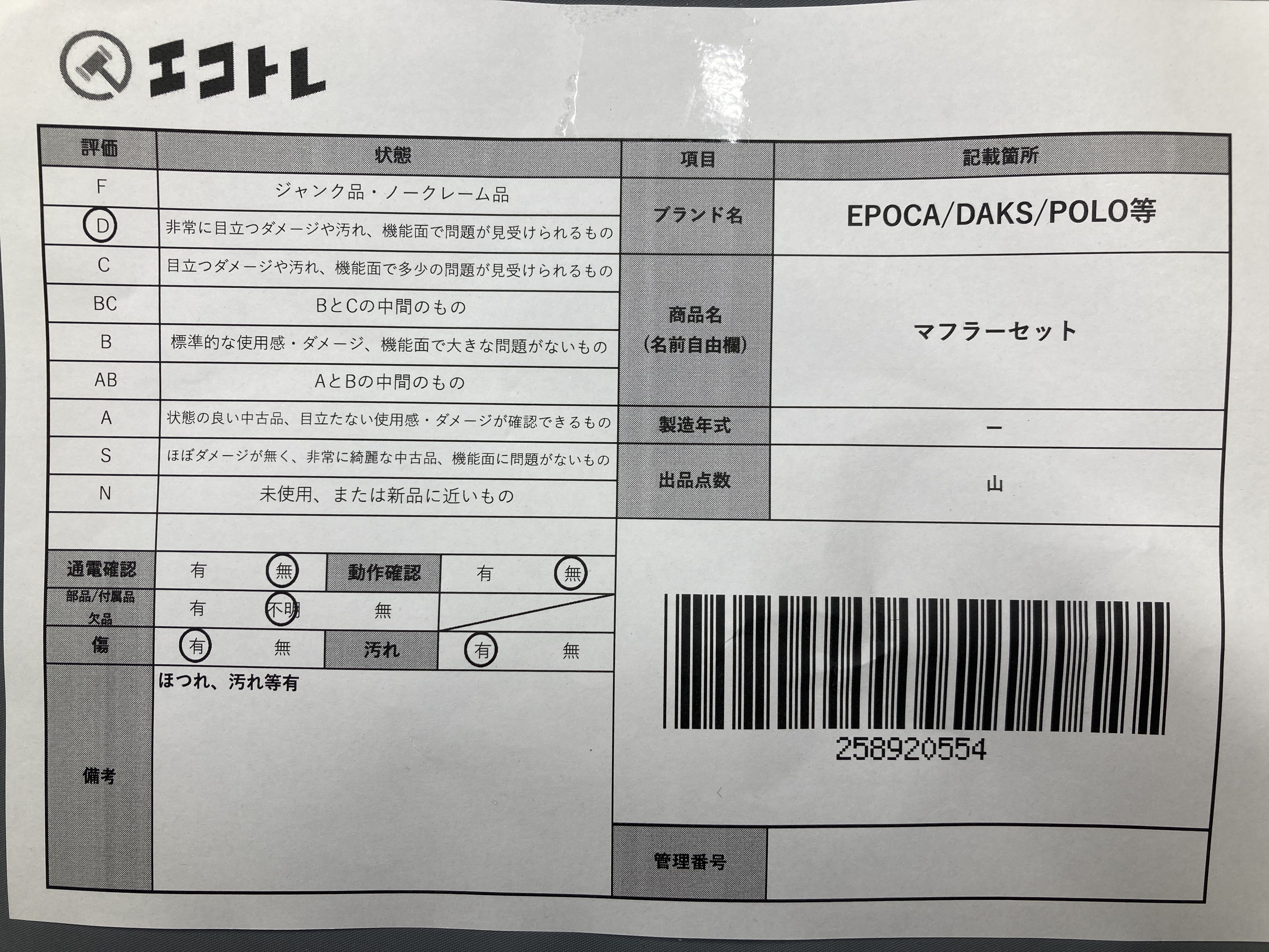 ▼SHIPPING TO JPN ONLY▼ 商品内容によって、JITBOXなどでの発送となる可能性がございます事ご理解下さい。年式などの商品情報詳細は写真にてご確認願います。※ご入札の際はご利用規約をよくお読みになってからのご参加お願いします。","タイプライン":"","カテゴリ":"アパレル","形状コード":"マフラー","付属品コード":"","シリアル・シール・型番":""