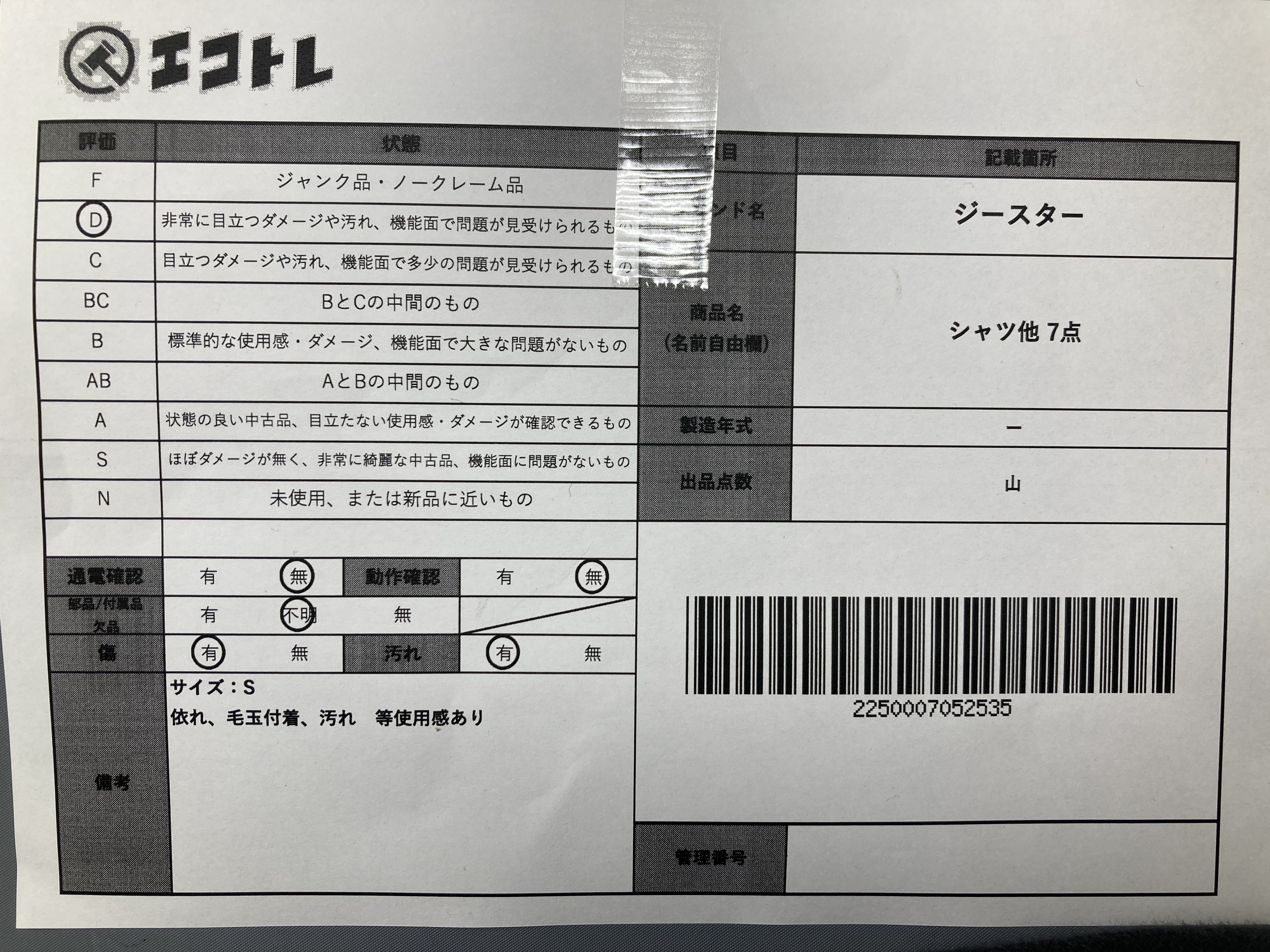(A_0333)▼ジースター シャツ他 7点 その他アパレル
