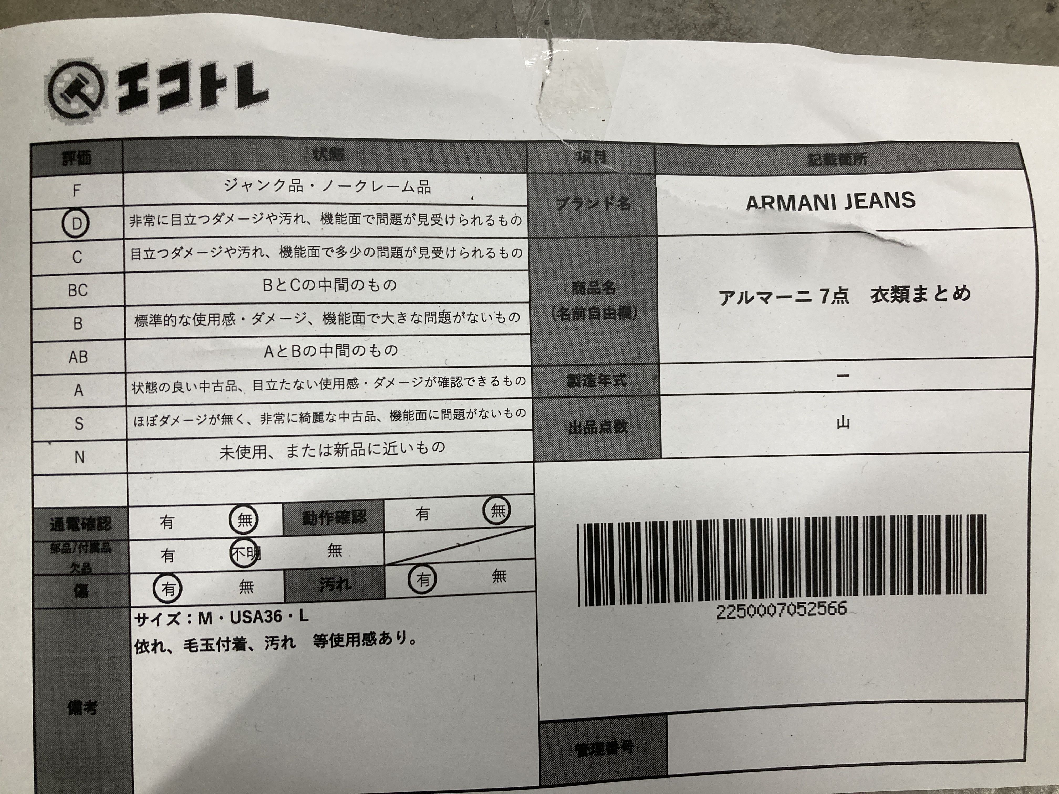 (A_0335)▼アルマーニ 7点 ARMANI JEANS 衣類まとめ その他アパレル