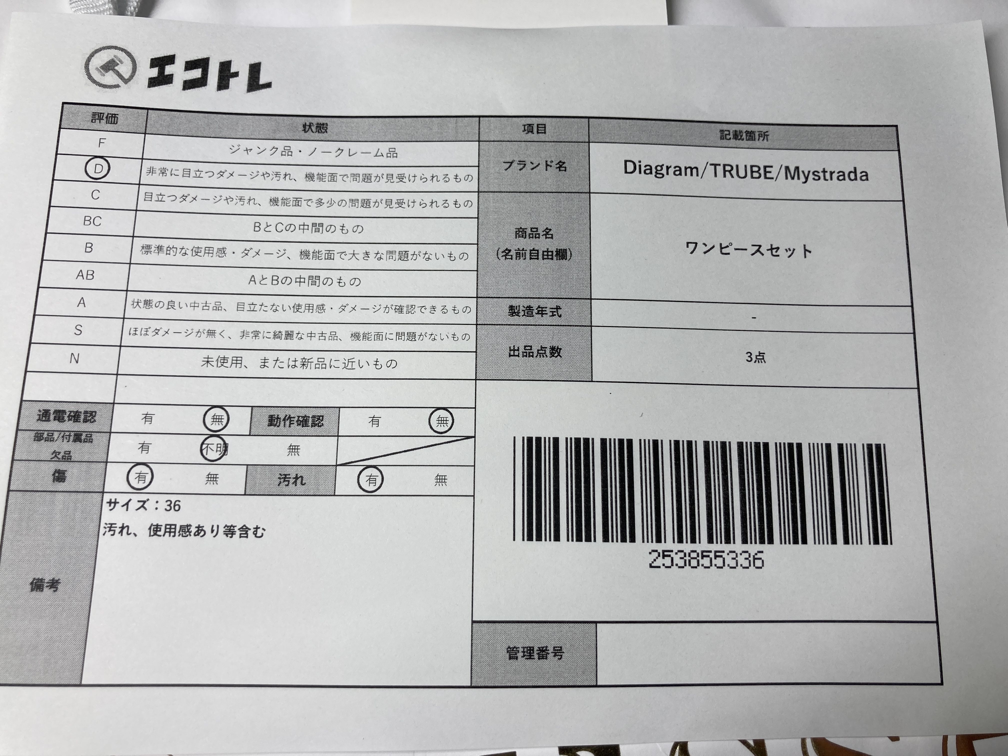 | "描述":"注意事項: | ▼SHIPPING TO JPN ONLY▼ 商品内容によって、JITBOXなどでの発送となる可能性がございます事ご理解下さい。年式などの商品情報詳細は写真にてご確認願います。※ご入札の際はご利用規約をよくお読みになってからのご参加お願いします。 部品/付属品 欠品 (中) 傷 (有) 汚れ (有) サイズ:36汚れ、使用感あり等含む","タイプライン":"","カテゴリ":"アパレル","形状コード":"その他アパレル","付属品コード":"","シリアル・シール・型番":"" |