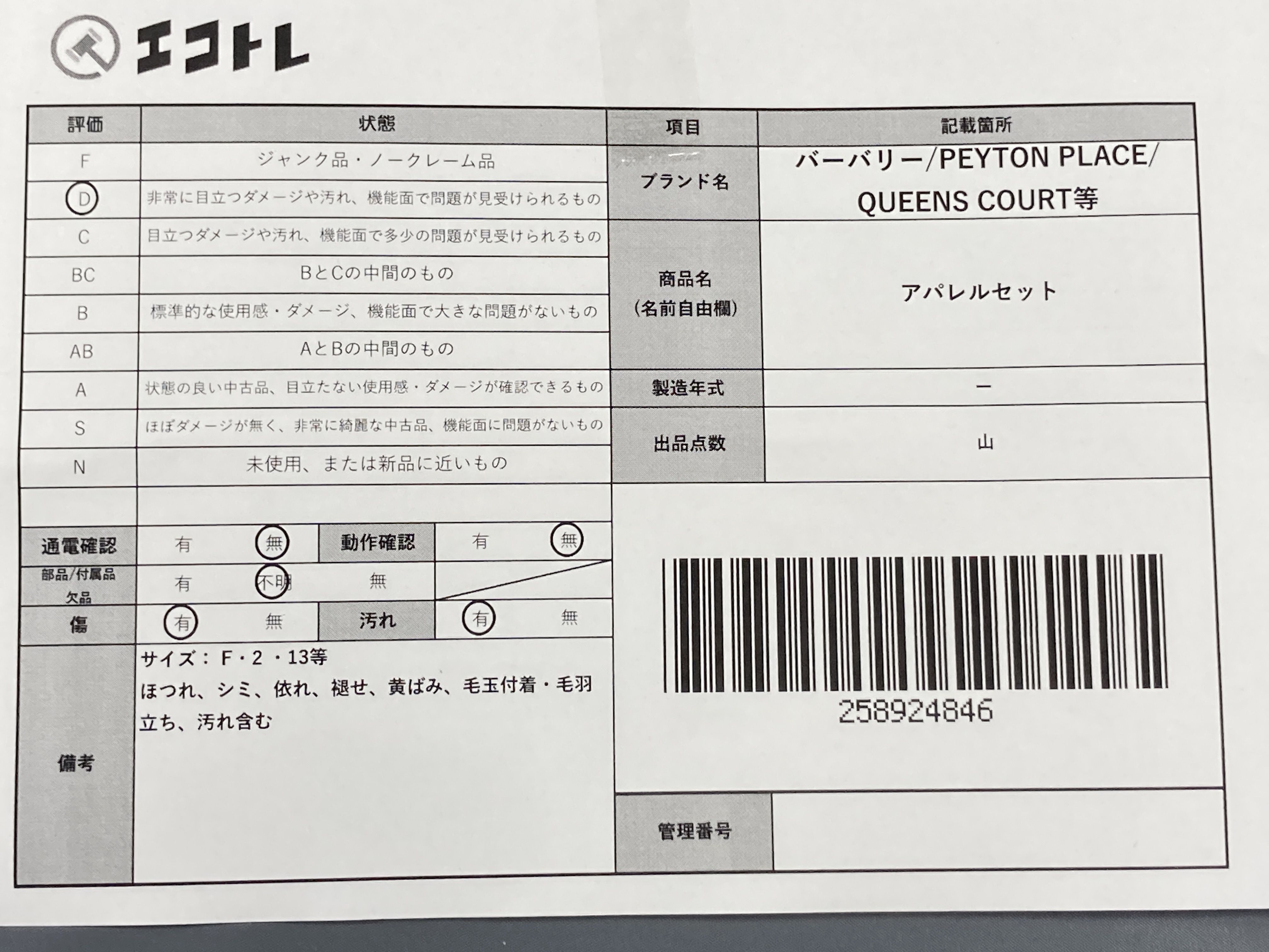 (A_0389)▼バーバリー/PEYTON PLACE/QUEENS COURT等 アパレルセット その他アパレル