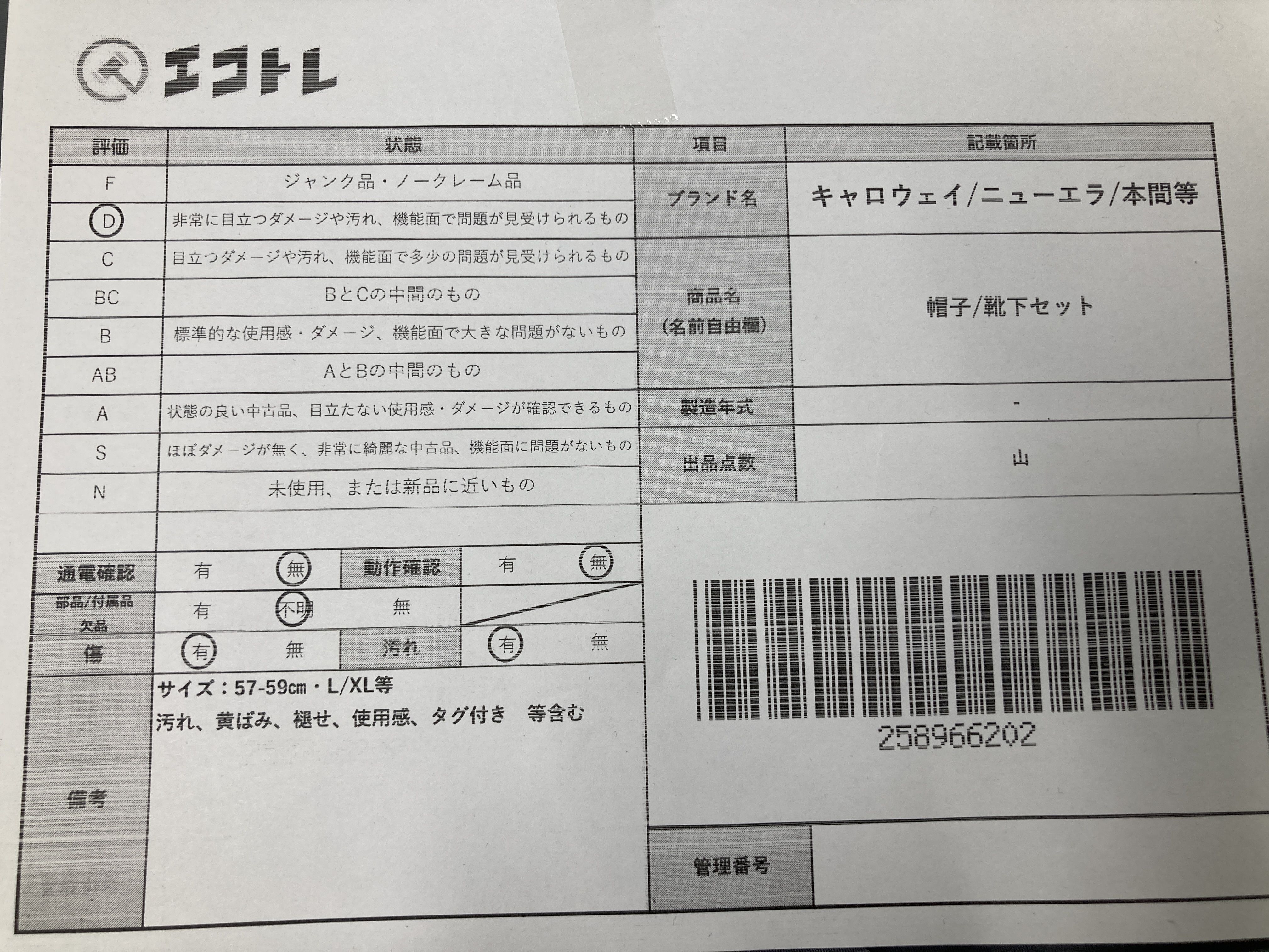 ▼SHIPPING TO JPN ONLY▼ 商品内容によって、JITBOXなどでの発送となる可能性がございます事ご理解下さい。年式などの商品情報詳細は写真にてご確認願います。※ご入札の際はご利用規約をよくお読みになってからのご参加お願いします。","タイプライン":"","カテゴリ":"アパレル","形状コード":"その他アパレル","付属品コード":"","シリアル・シール・型番":""