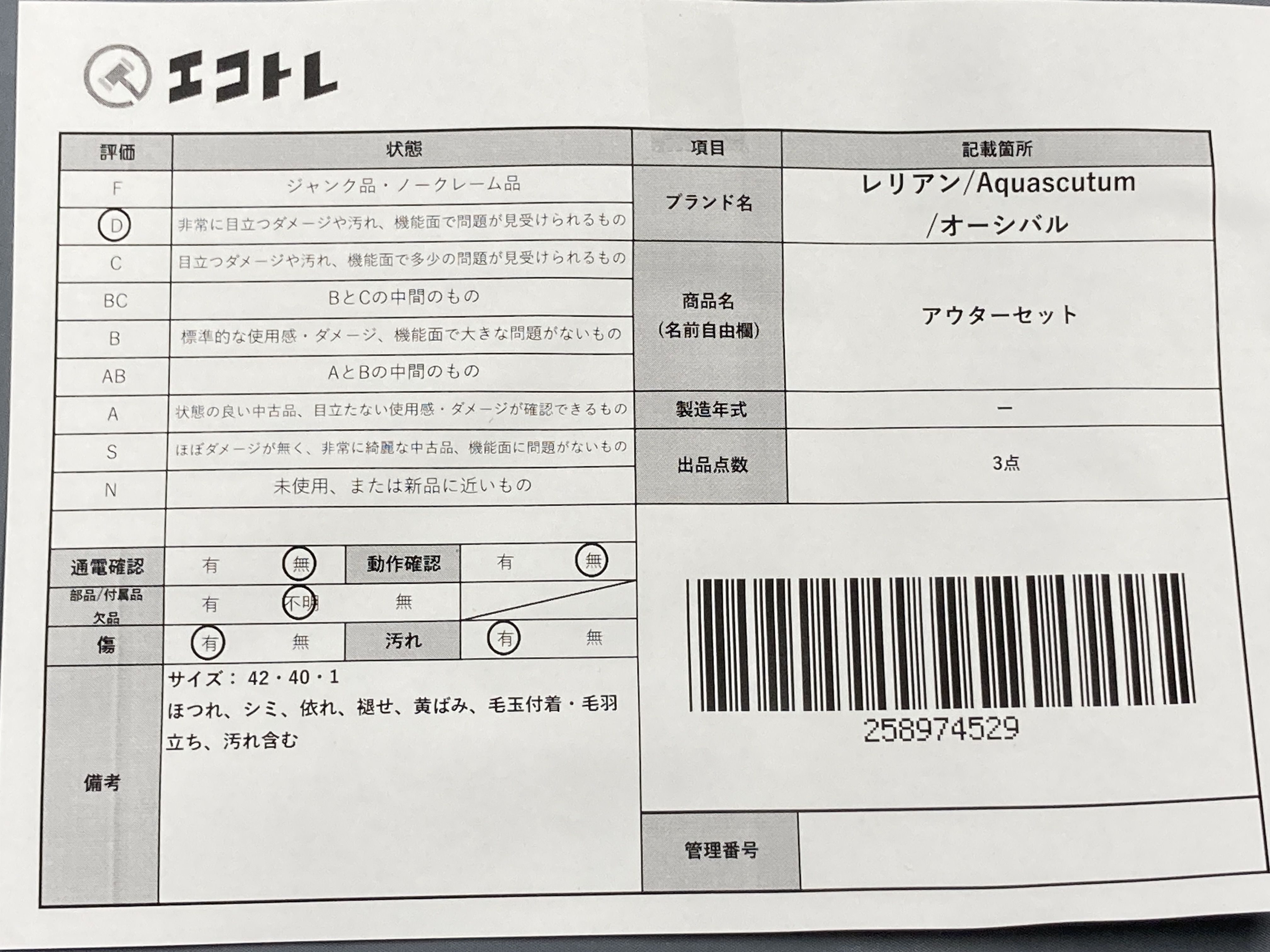 ▼SHIPPING TO JPN ONLY▼ 商品内容によって、JITBOXなどでの発送となる可能性がございます事ご理解下さい。年式などの商品情報詳細は写真にてご確認願います。※ご入札の際はご利用規約をよくお読みになってからのご参加お願いします。","タイプライン":"","カテゴリ":"アパレル","形状コード":"コート","付属品コード":"","シリアル・シール・型番":""