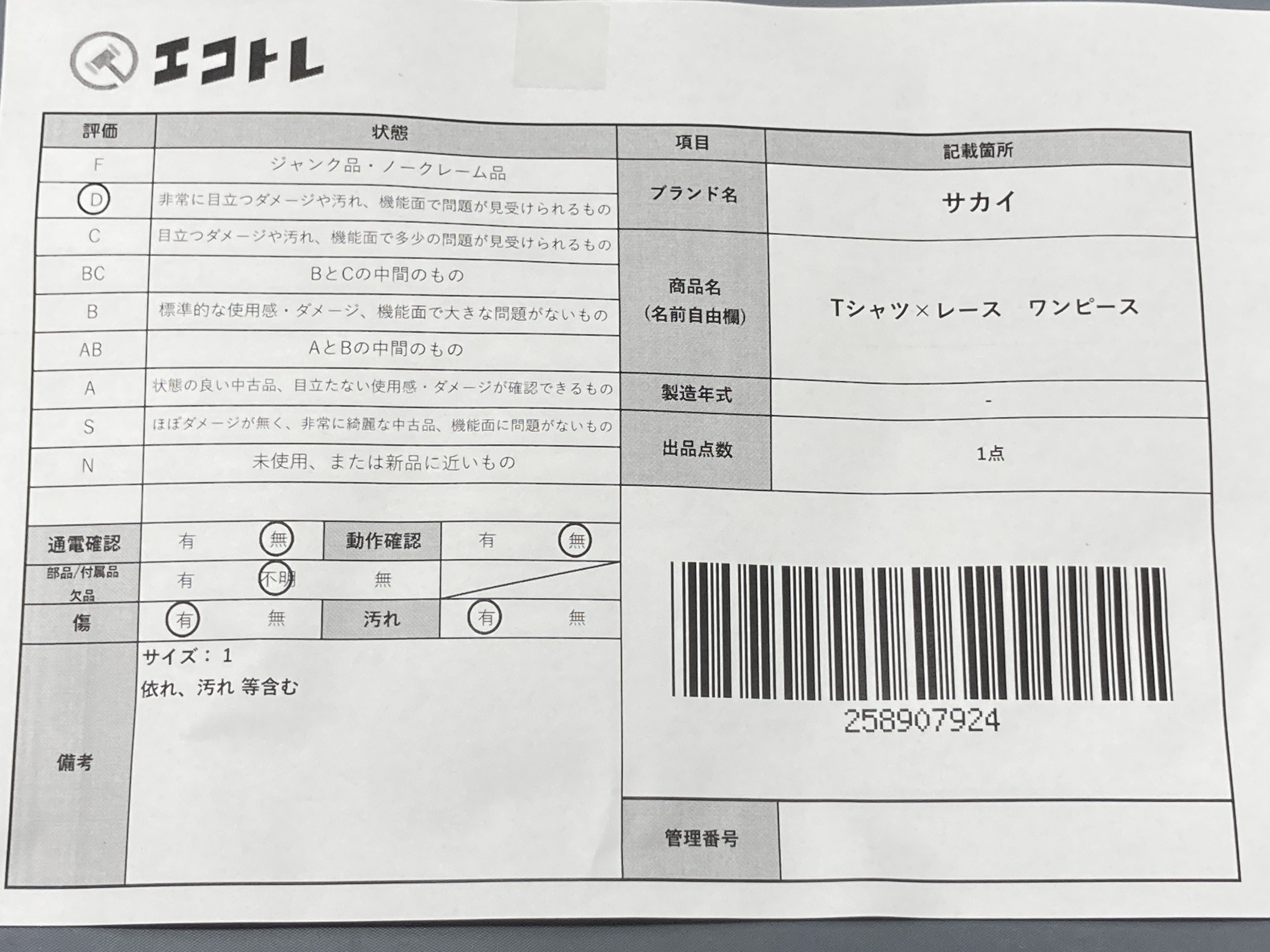 ▼SHIPPING TO JPN ONLY▼ 商品内容によって、JITBOXなどでの発送となる可能性がございます事ご理解下さい。年式などの商品情報詳細は写真にてご確認願います。※ご入札の際はご利用規約をよくお読みになってからのご参加お願いします。","タイプライン":"","カテゴリ":"アパレル","形状コード":"ワンピース","付属品コード":"","シリアル・シール・型番":""