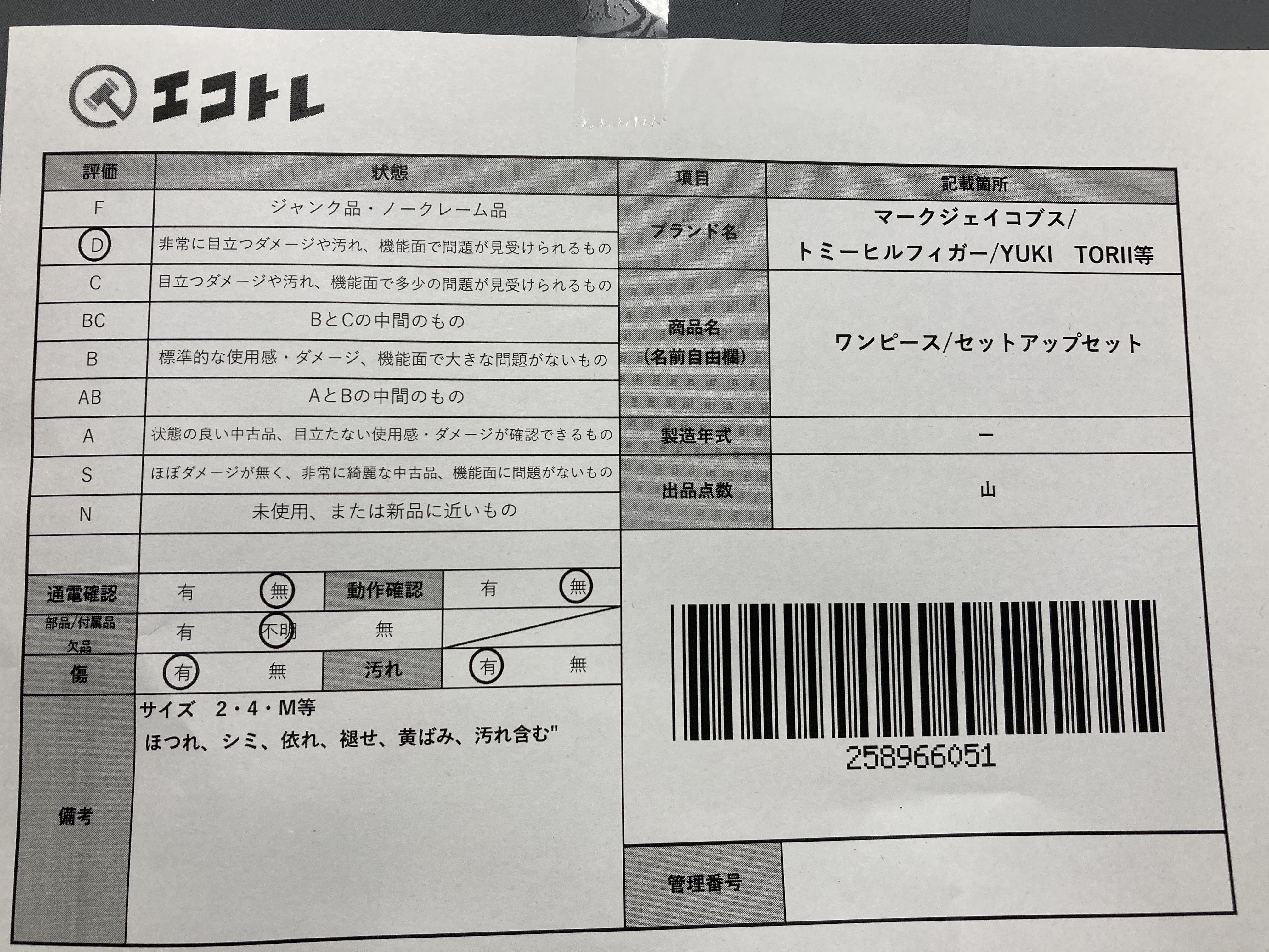▼SHIPPING TO JPN ONLY▼ 商品内容によって、JITBOXなどでの発送となる可能性がございます事ご理解下さい。年式などの商品情報詳細は写真にてご確認願います。※ご入札の際はご利用規約をよくお読みになってからのご参加お願いします。","タイプライン":"","カテゴリ":"アパレル","形状コード":"ワンピース","付属品コード":"","シリアル・シール・型番":""