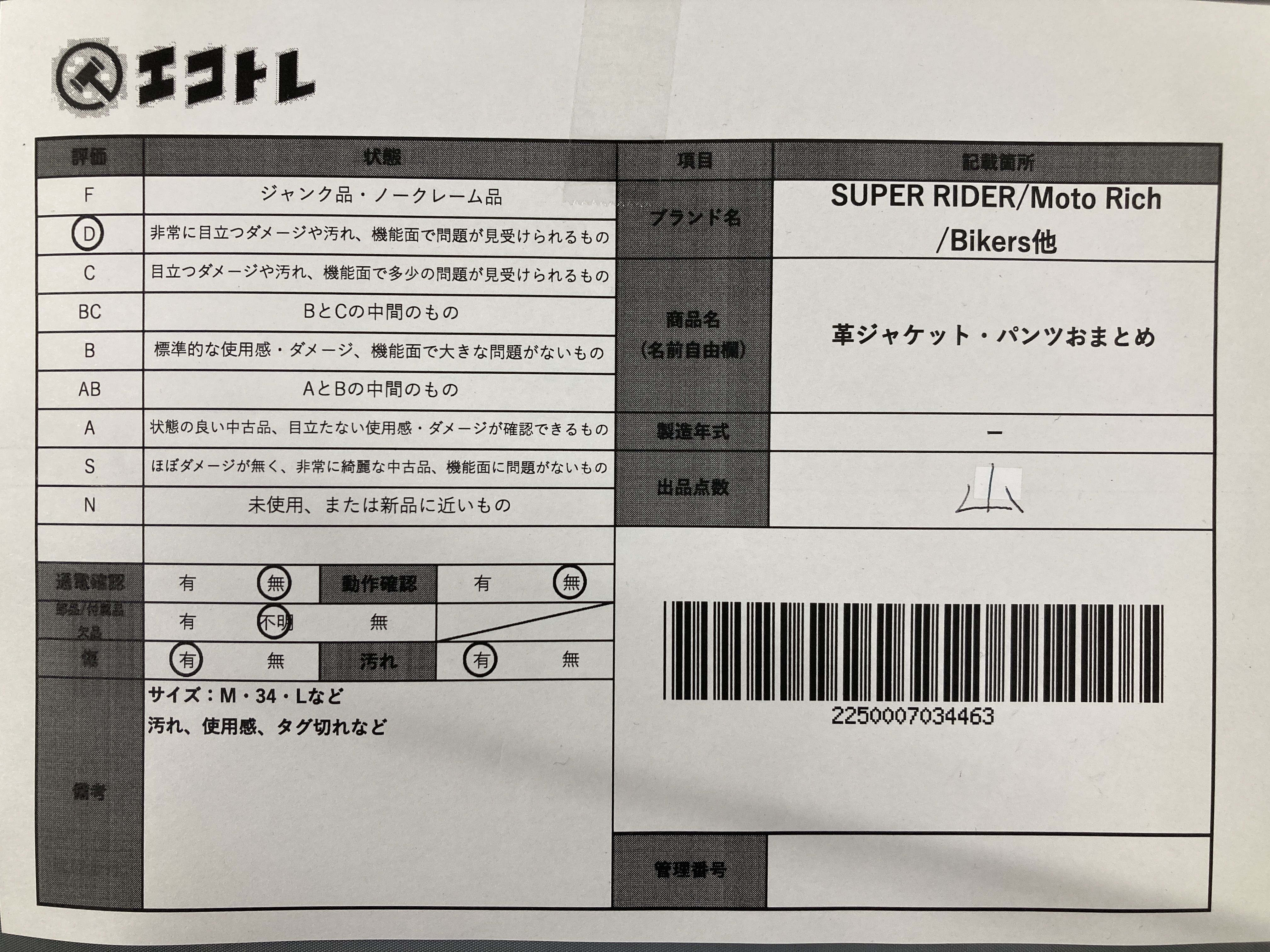 ▼SHIPPING TO JPN ONLY▼ 商品内容によって、JITBOXなどでの発送となる可能性がございます事ご理解下さい。年式などの商品情報詳細は写真にてご確認願います。※ご入札の際はご利用規約をよくお読みになってからのご参加お願いします。","タイプライン":"","カテゴリ":"アパレル","形状コード":"ジャケット","付属品コード":"","シリアル・シール・型番":""